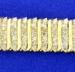 In 10K yellow gold it is 7 inches long and contains 12cts of champagne diamonds-great cut & color! 45.7g