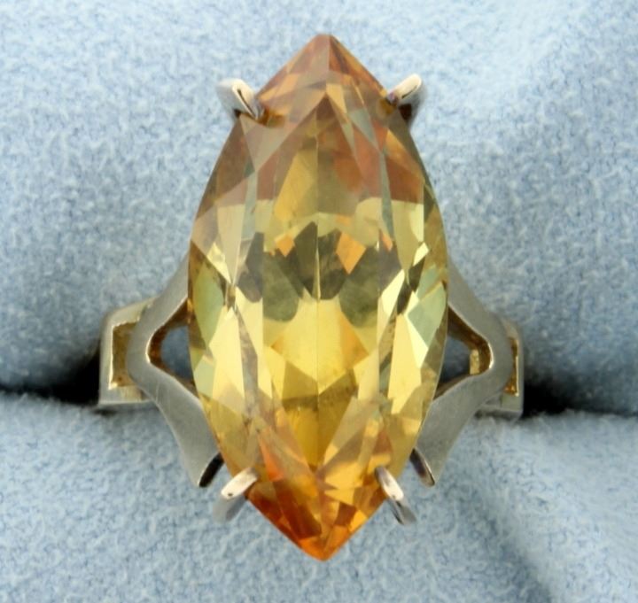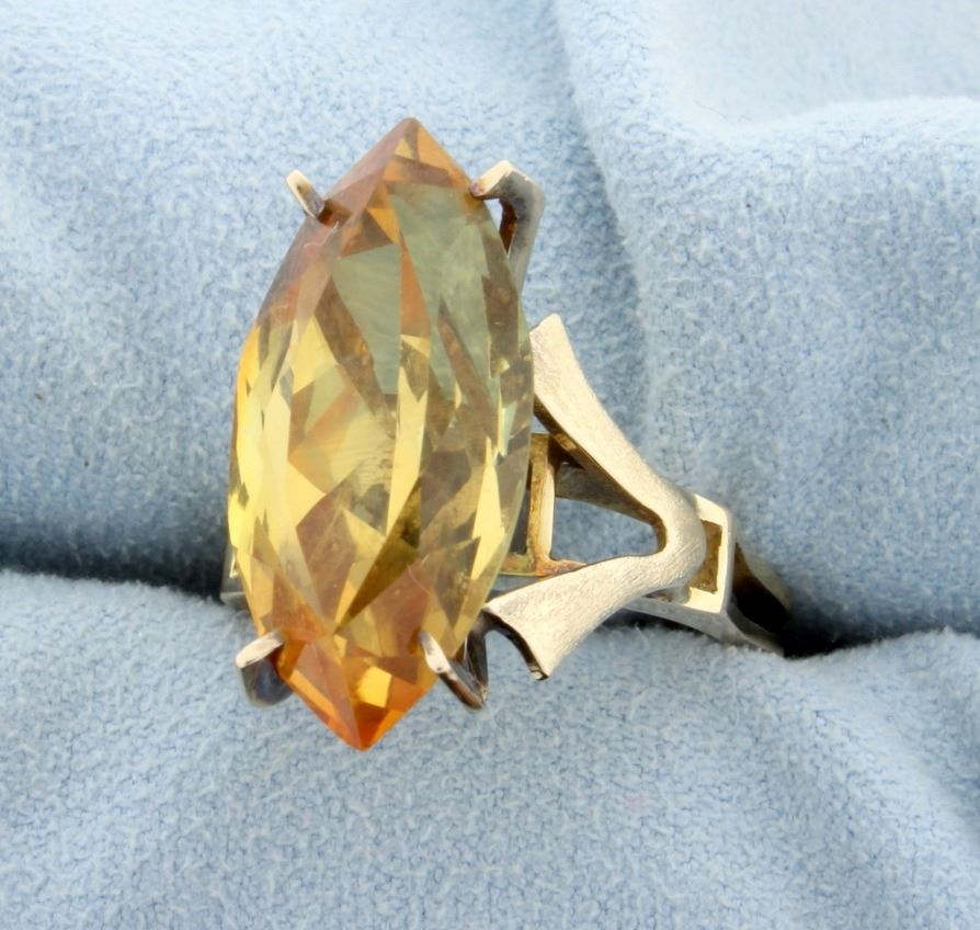 In 14K yellow gold, this ring contains a 23x11 marquise shaped citrine gemstone with excellent color and clarity. Size 8 8.8g