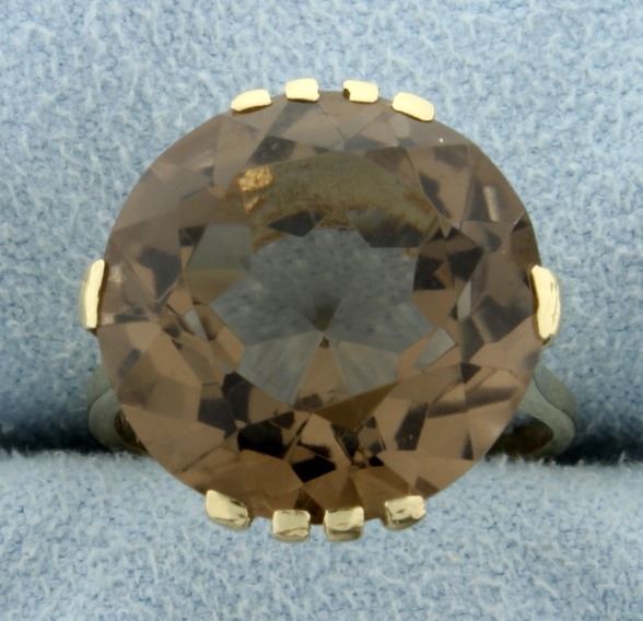 14K yellow gold, the smoky quartz is 15.5mm round approx. 12cts. Size 5 3/4 5.3g