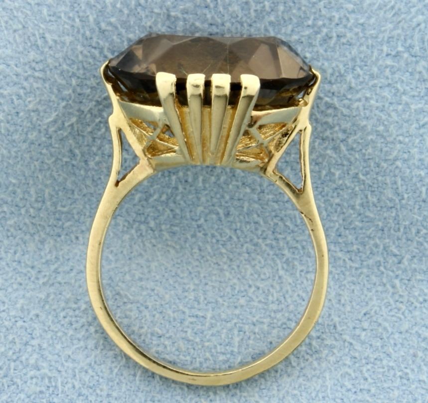 14K yellow gold, the smoky quartz is 15.5mm round approx. 12cts. Size 5 3/4 5.3g