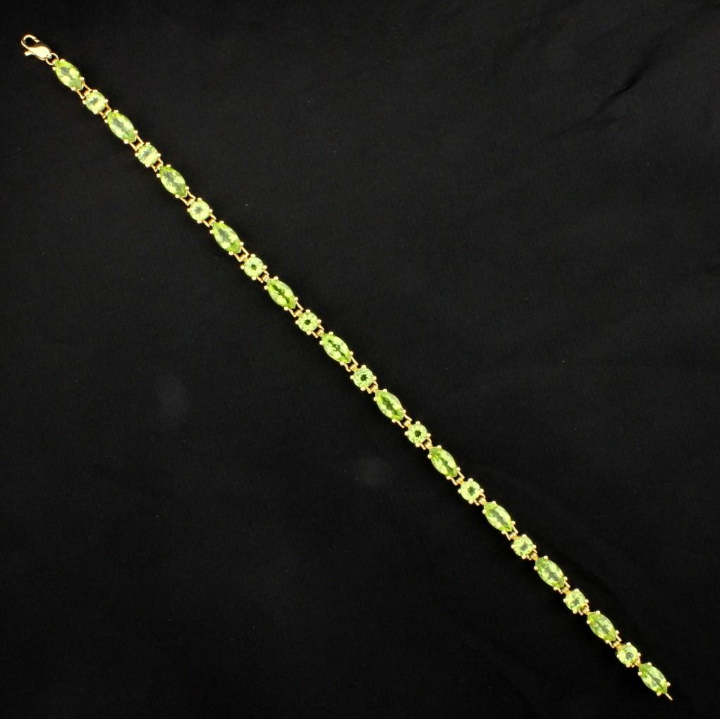 In 14K yellow gold, it is 7 3/4 inches long with a lobster clasp. It contains twelve 8x4mm marquise and eleven 4mm round gemstones. All have beautiful color and clarity.             5.6g