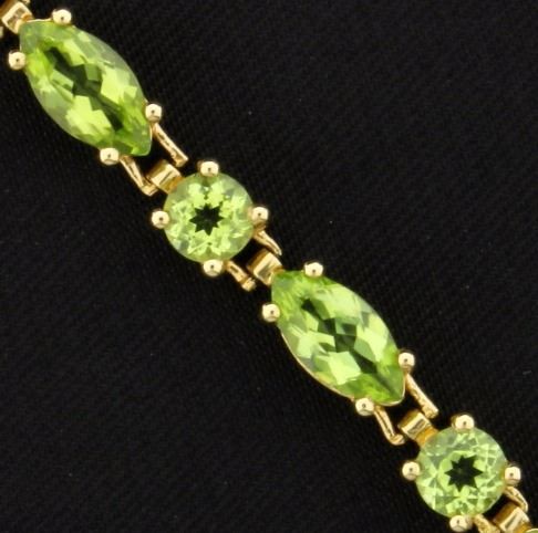 In 14K yellow gold, it is 7 3/4 inches long with a lobster clasp. It contains twelve 8x4mm marquise and eleven 4mm round gemstones. All have beautiful color and clarity. 5.6g