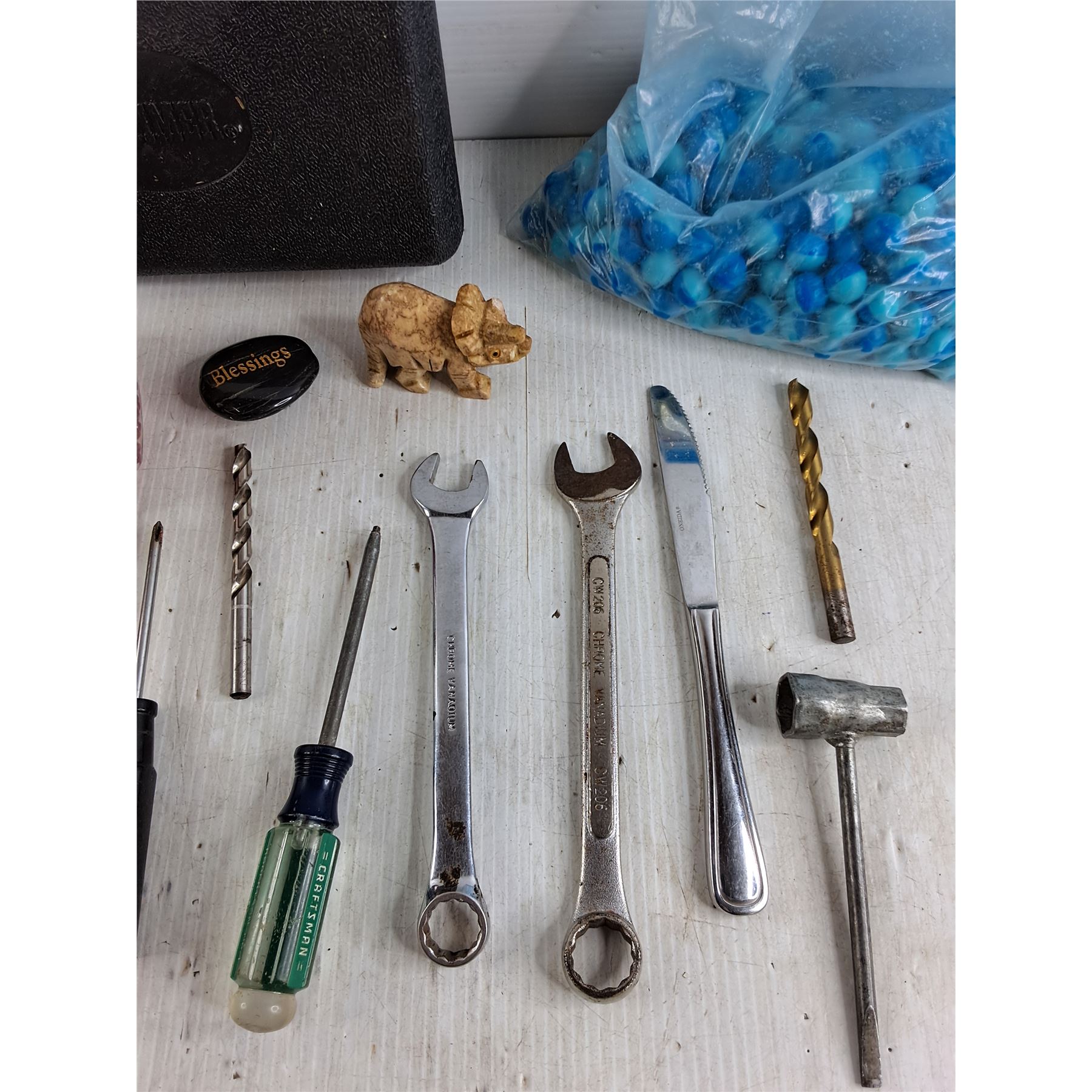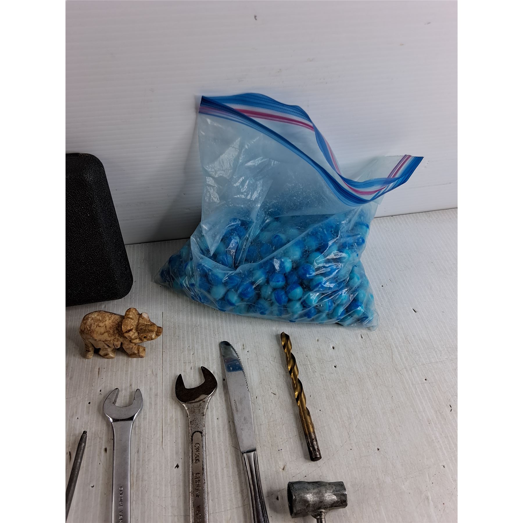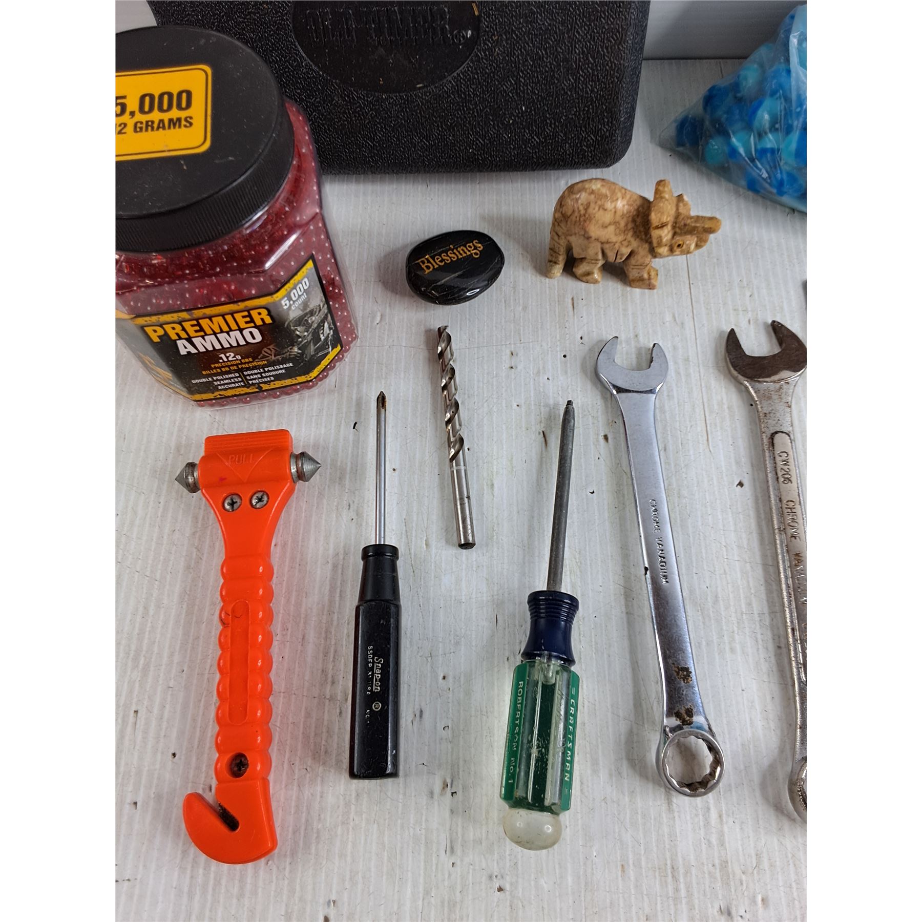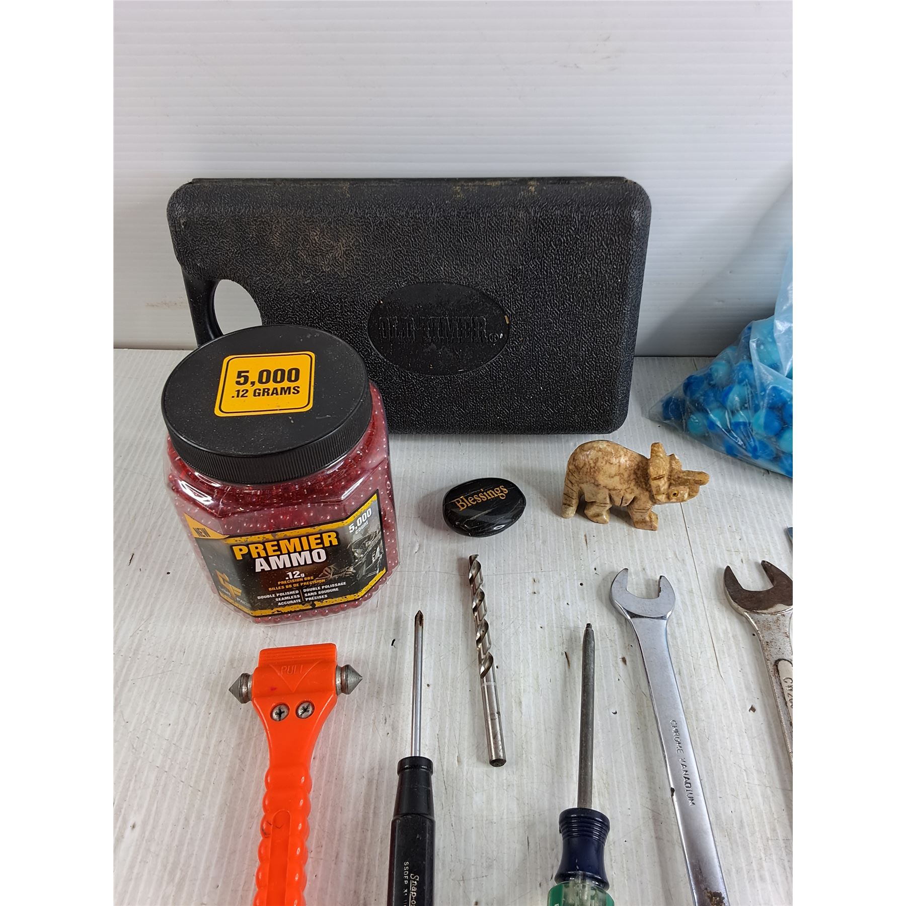 .12g Precision BBS Ammo, Elephant Ornament, Old Timer Plastic Case, Glass Breaker, Wrenches, Misc