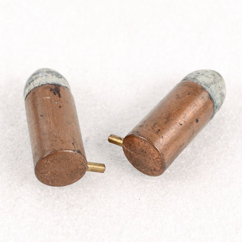 This is a long 12mm pinfire cartridge produced by Houllier & Blanchard of Paris. The longer style was used for the pinfire carbines and was imported during the Civil War. Head Stamped H B over PARIS.