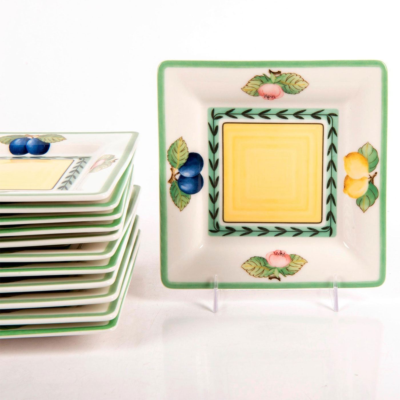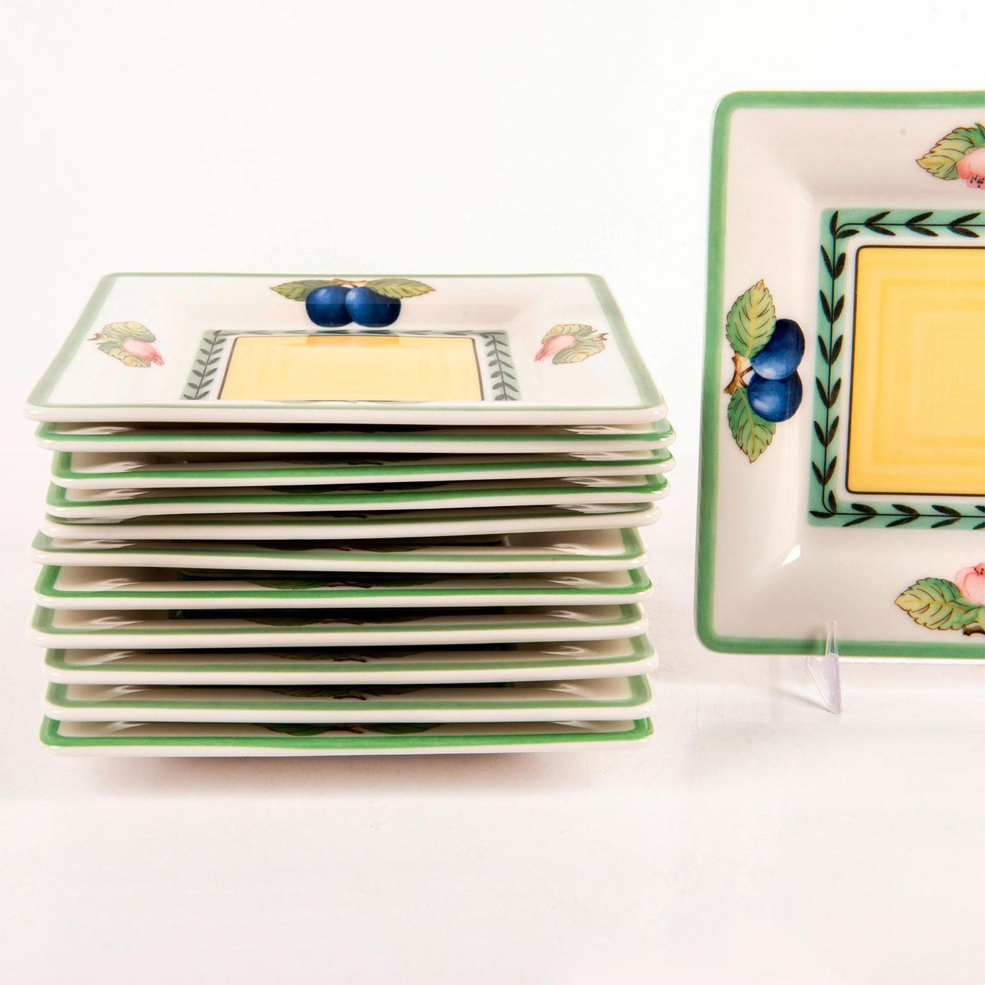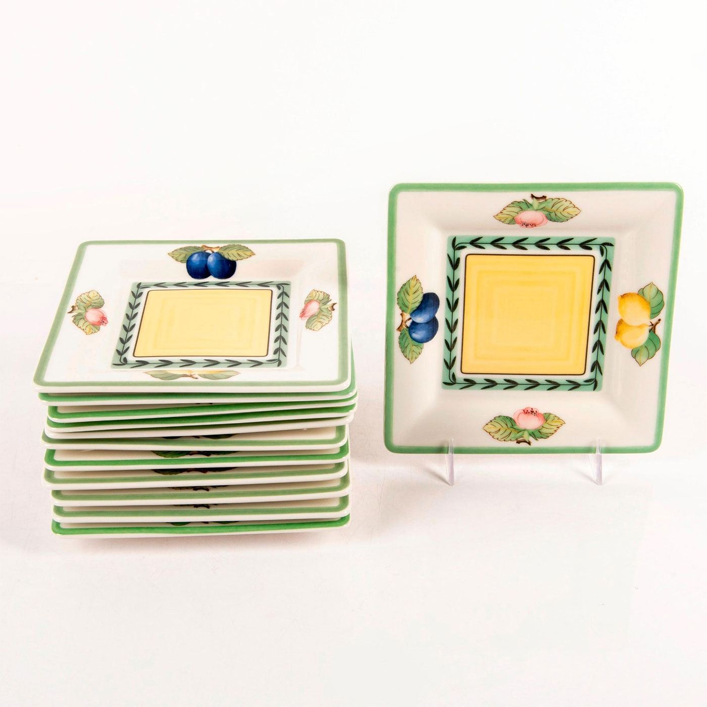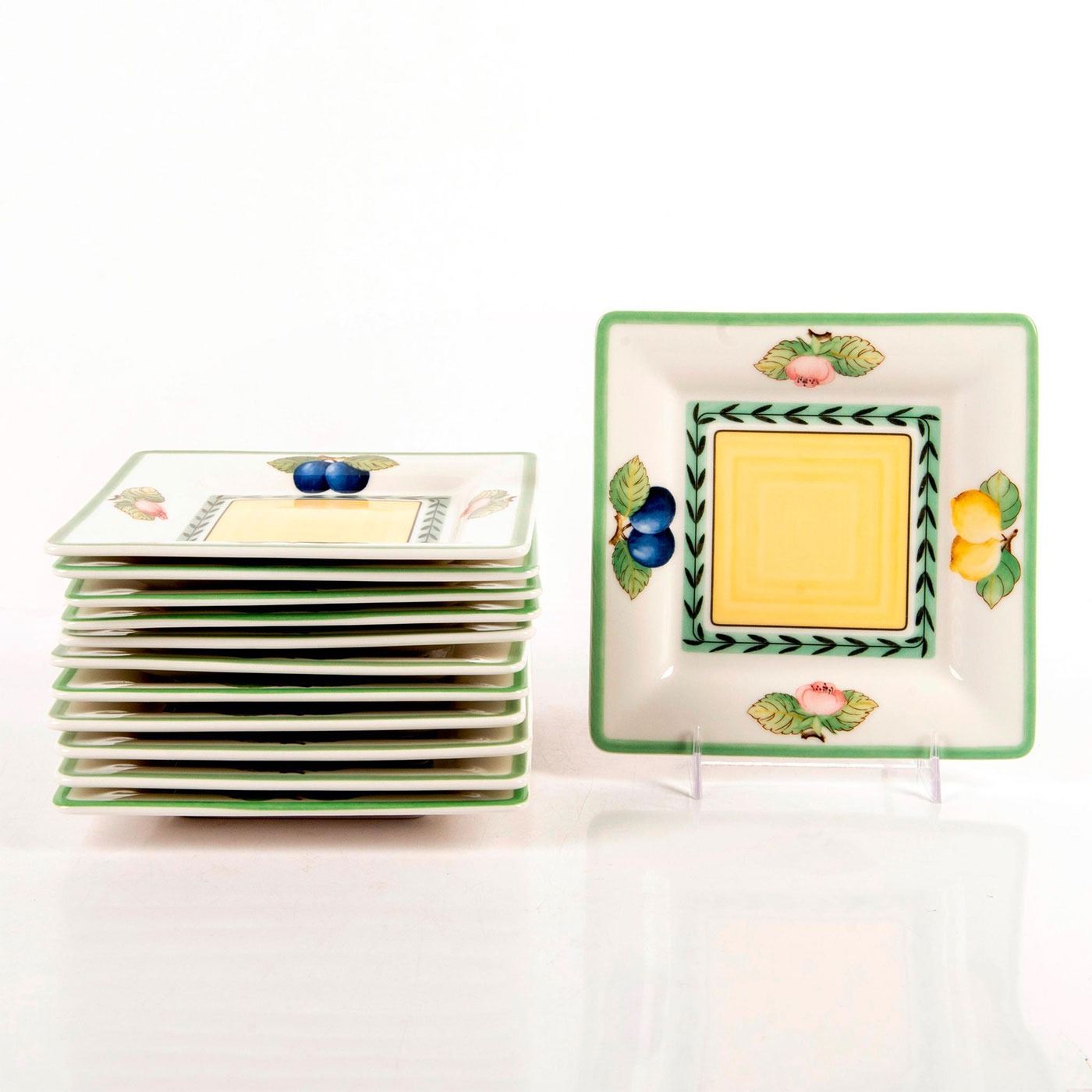 Fine China, pattern from the French Garden Fleurence collection, designed with fruit and pink flowers. Villeroy & Boch backstamp. #villeroy&boch #brunch #finechina #fruit #frenchgarden