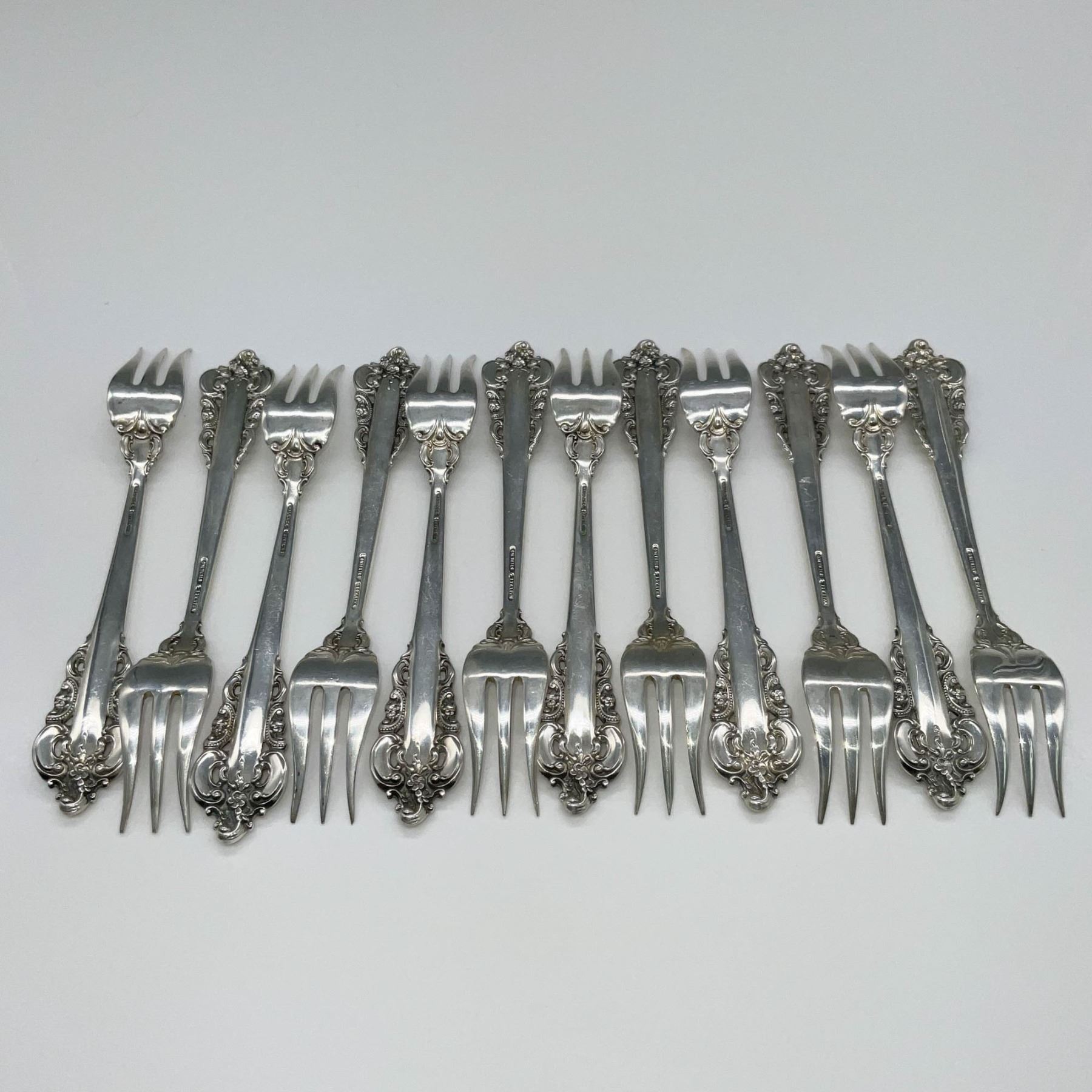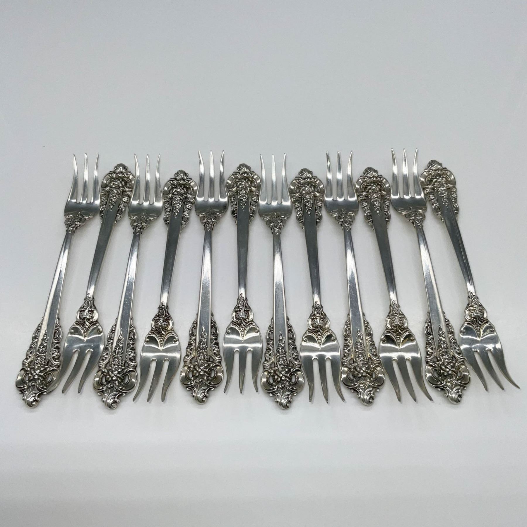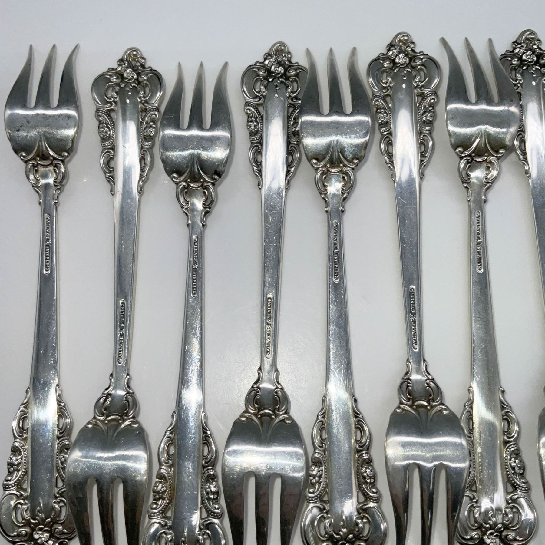 12pc Wallace Sterling Cocktail Forks, Grand Baroque