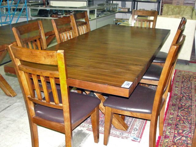 Table with 2 leafs, 8 chairs and matching buffet wine cabinet