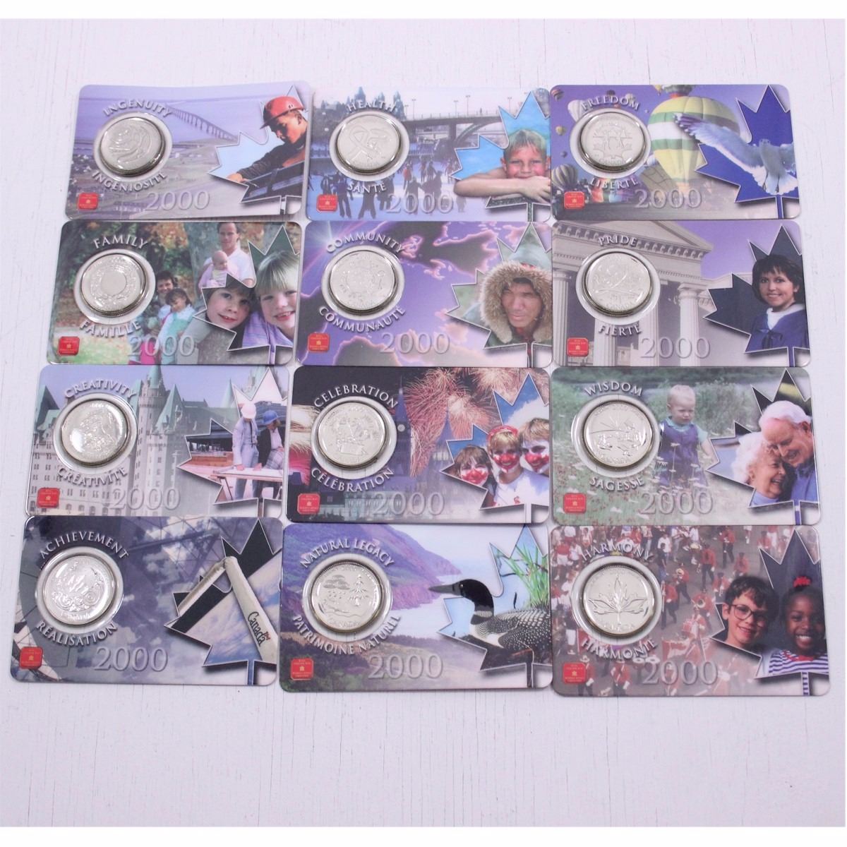 12x Canada 2000 Commemorative Millennium 25 Cents with Coloured Card issued by the Royal Canadian Mint. 12pcs. Buyers Premium will be added on all items as per our terms of sale. We accept Paypal, Credit Card, E-Transfer Payments, Cheque or Money Orders (there is an additional 3% fee for using Paypal or Credit Card). All invoices will be emailed immediately following the auction, please contact us if you would like to pay by credit card or receive a new revised lower total for mailing in payment or sending an e-transfer (3% discount). All Items Are Sold "AS IS", no returns