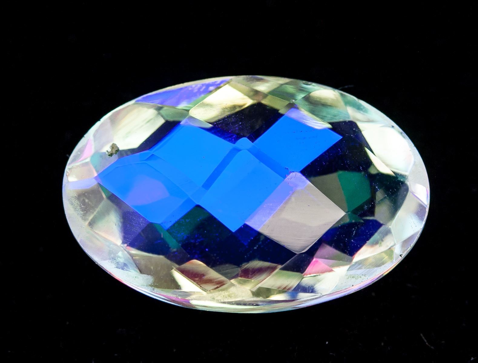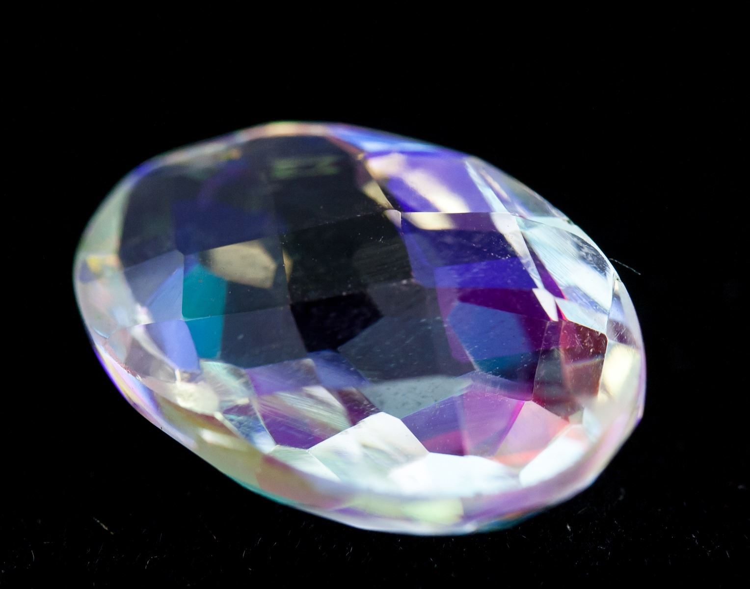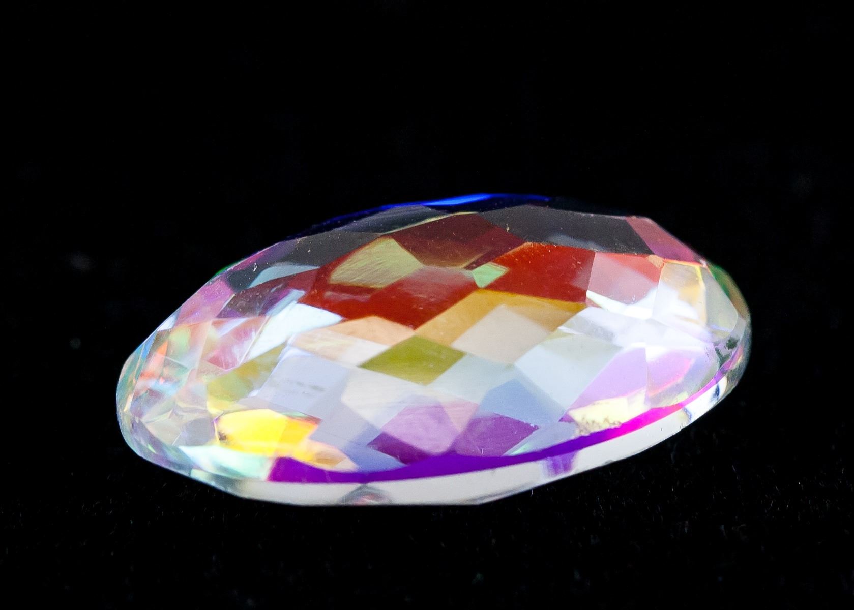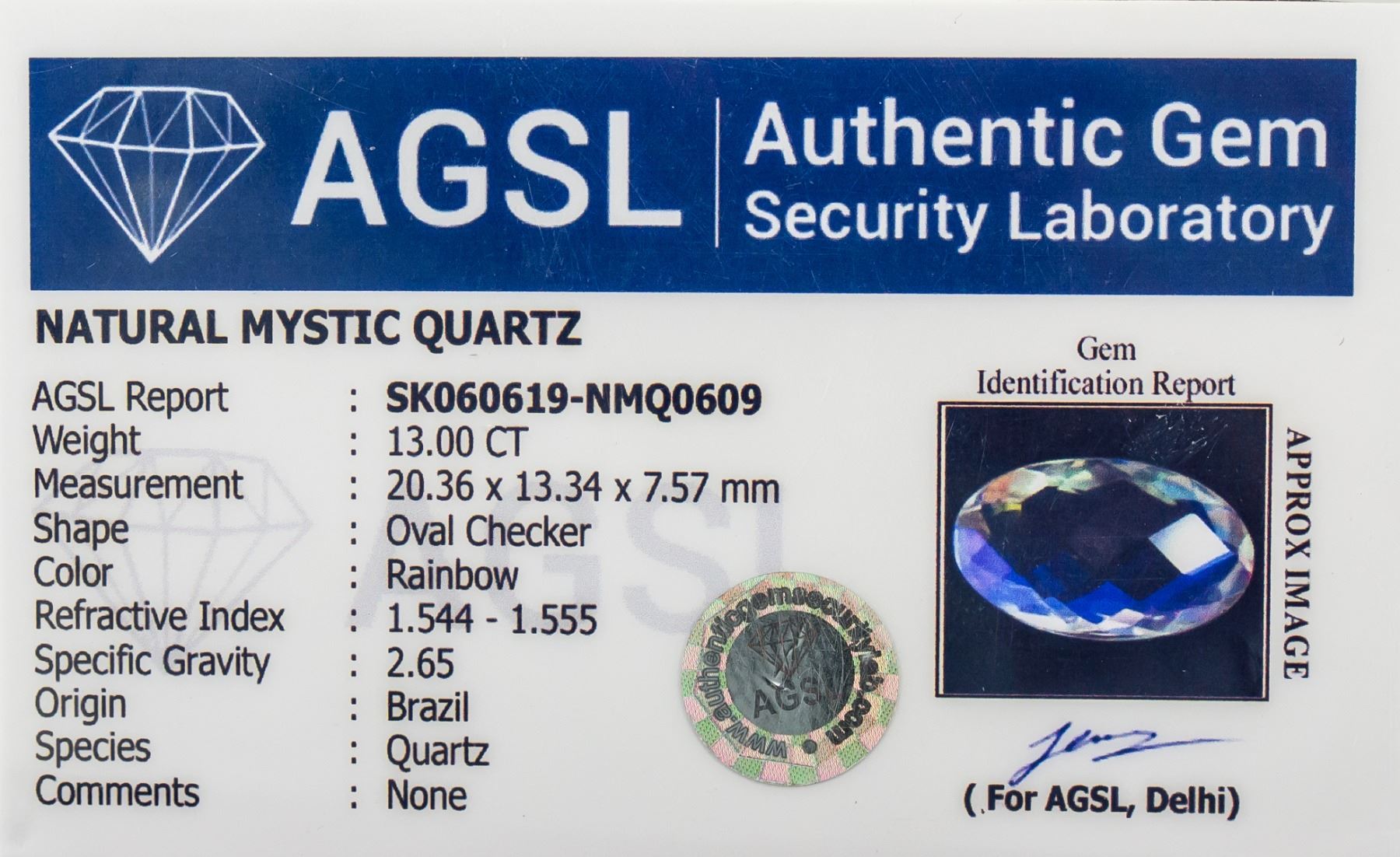 One (1) 13.00 ct oval checker shape rainbow color natural mystic quartz gemstone. 20.36 x 13.34 x 7.57 mm. Origin: Brazil. Accompanied with AGSL certificate.