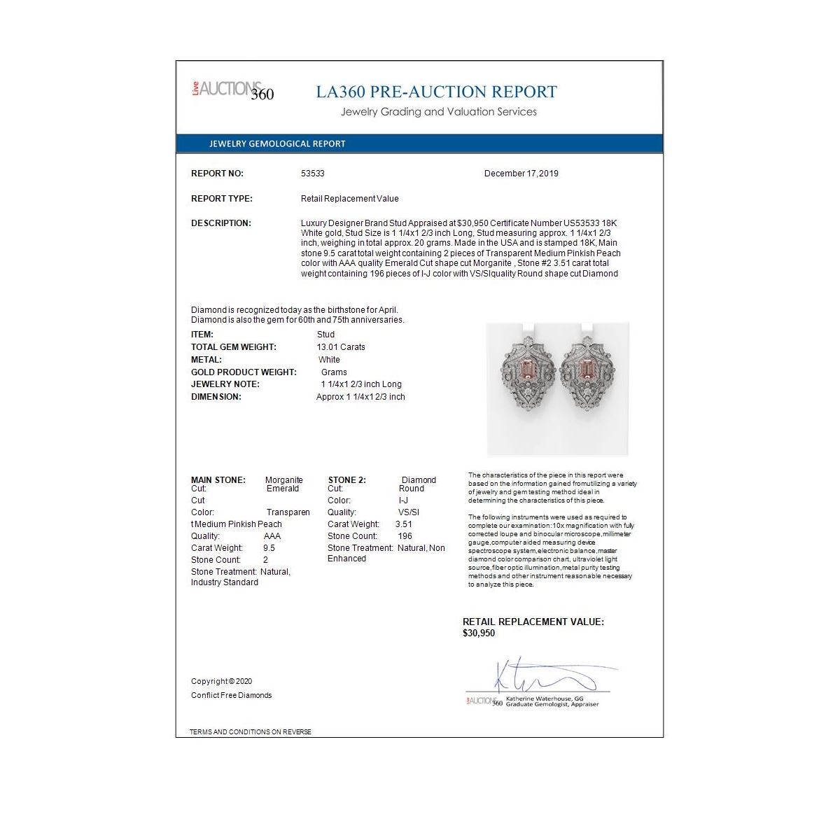 REF-703Y6X - SKU: 53533 ---- 13.01 ctw Morganite & Diamond Earrings 18K White Gold