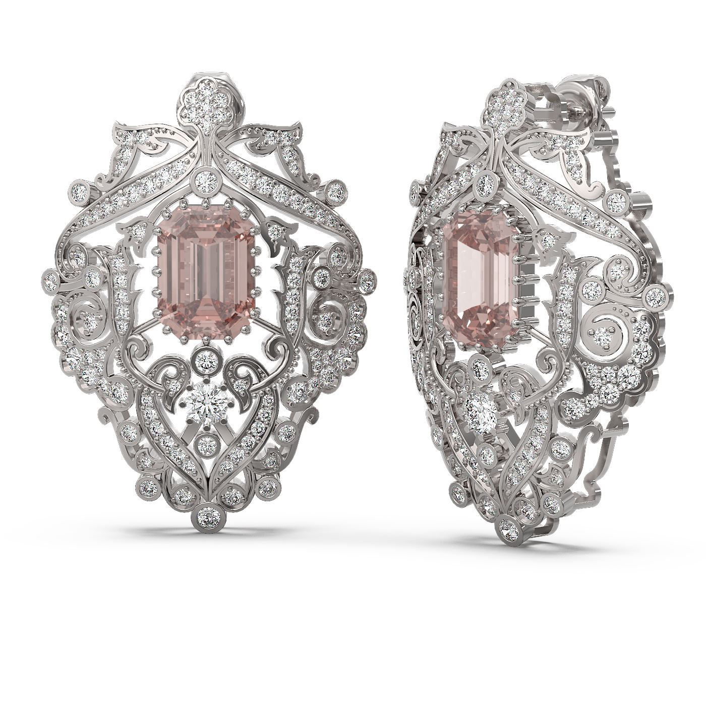 SKU: 53533 ---- 13.01 ctw Morganite & Diamond Earrings 18K White Gold