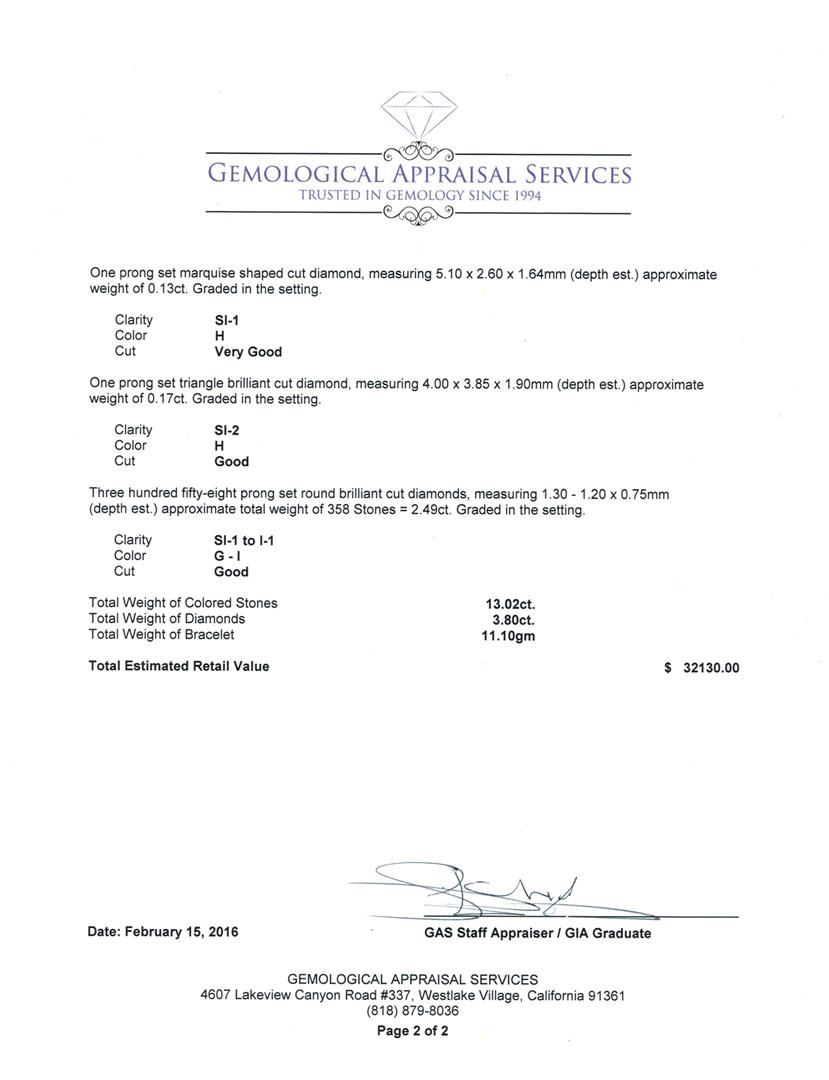 Not all Jewelry, watches or loose stones are appraised and the appraisals are provided for bidders only in certain instances at the discretion of SAA. Our appraisals are conducted by independent third-party appraisal firms. Such firms may be certified GIA Gemologists or have education in the industry or alternative certifications. Appraisals should be used for verification of gemstone and/or metal weight, size, and grade only, not actual value for resale or insurance purposes. Appraisal value should be not considered for actual value, as price varies greatly from retail locations and other merchants in different geographic locations. All Items auctioned by SAA should not be purchased with a view or expectation toward resale for appraisal price given, or to make a profit. The ultimate value for which an item can be resold may vary drastically from the appraisals listed by SAA.