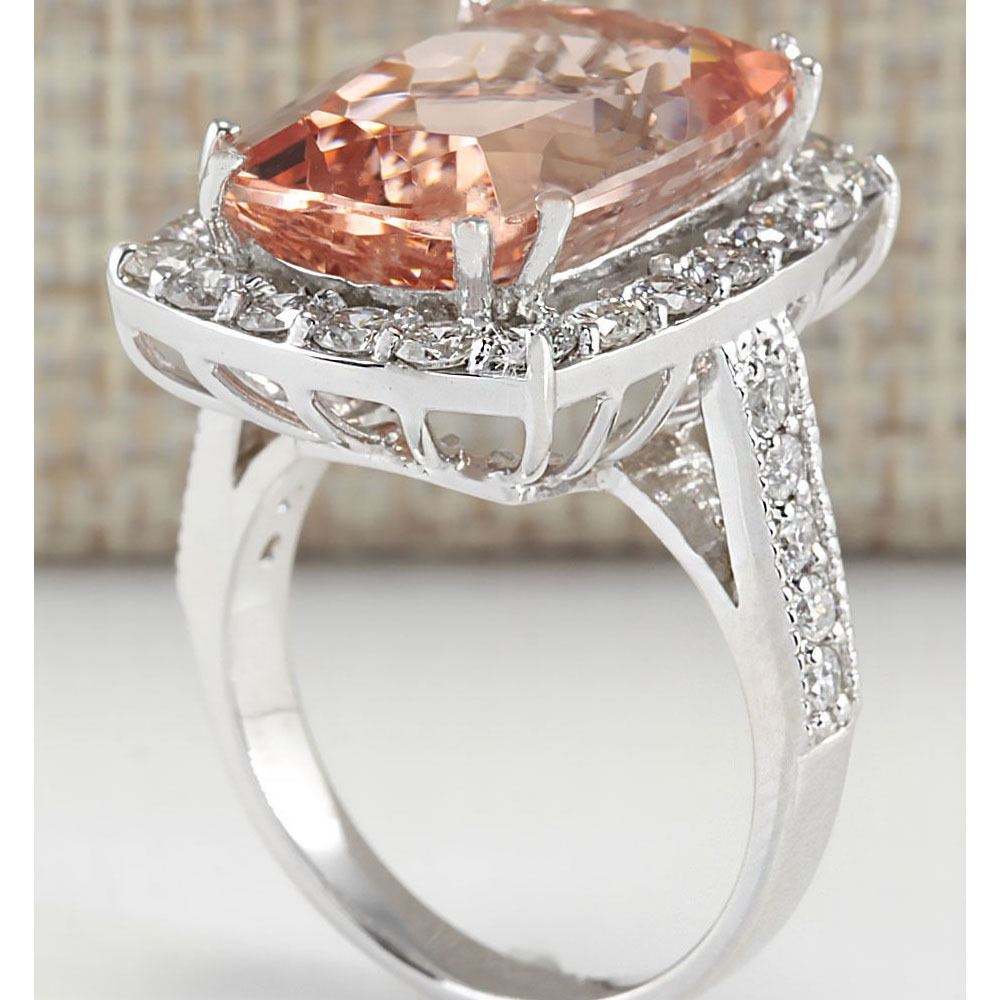 13.03 CTW Natural Morganite And Diamond Ring In 18K White Gold