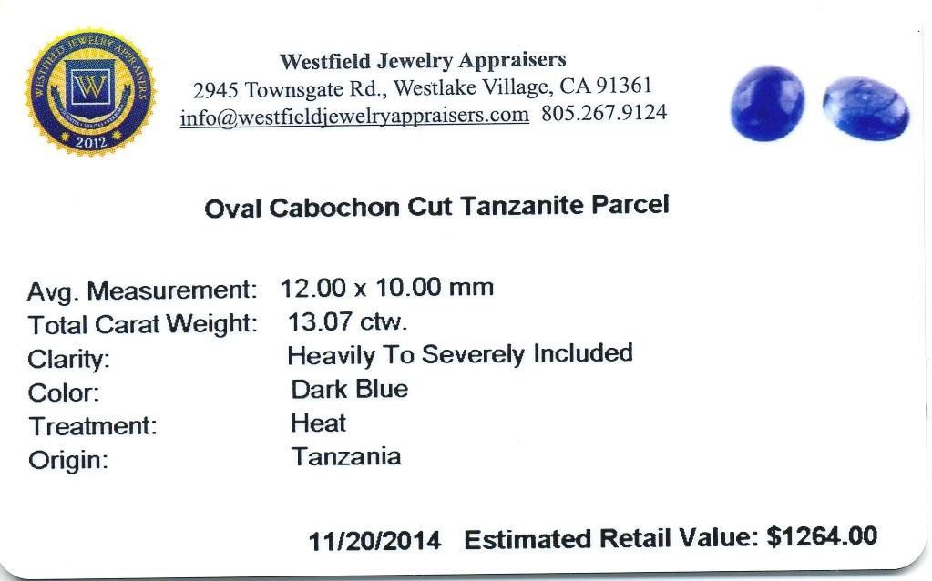 13.07ctw. Oval Cabochon Cut Tanzanite Parcel. Westfield Appraised at $1,264.00.