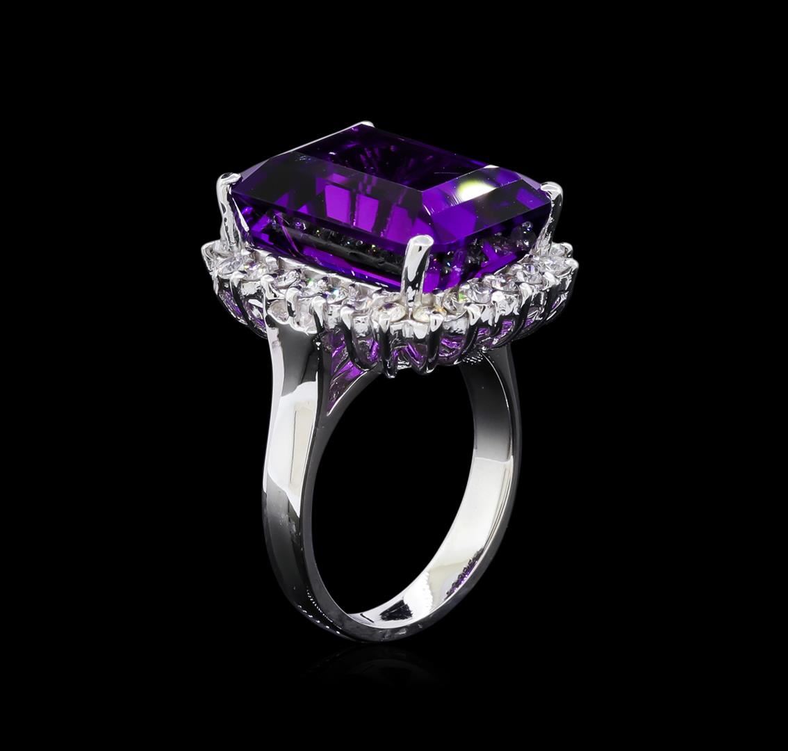 One ring featuring: 14KT white gold weighing 7.32 grams containing one amethyst with a total weight of 13.08ct and diamonds with a total weight of 0.72ct.