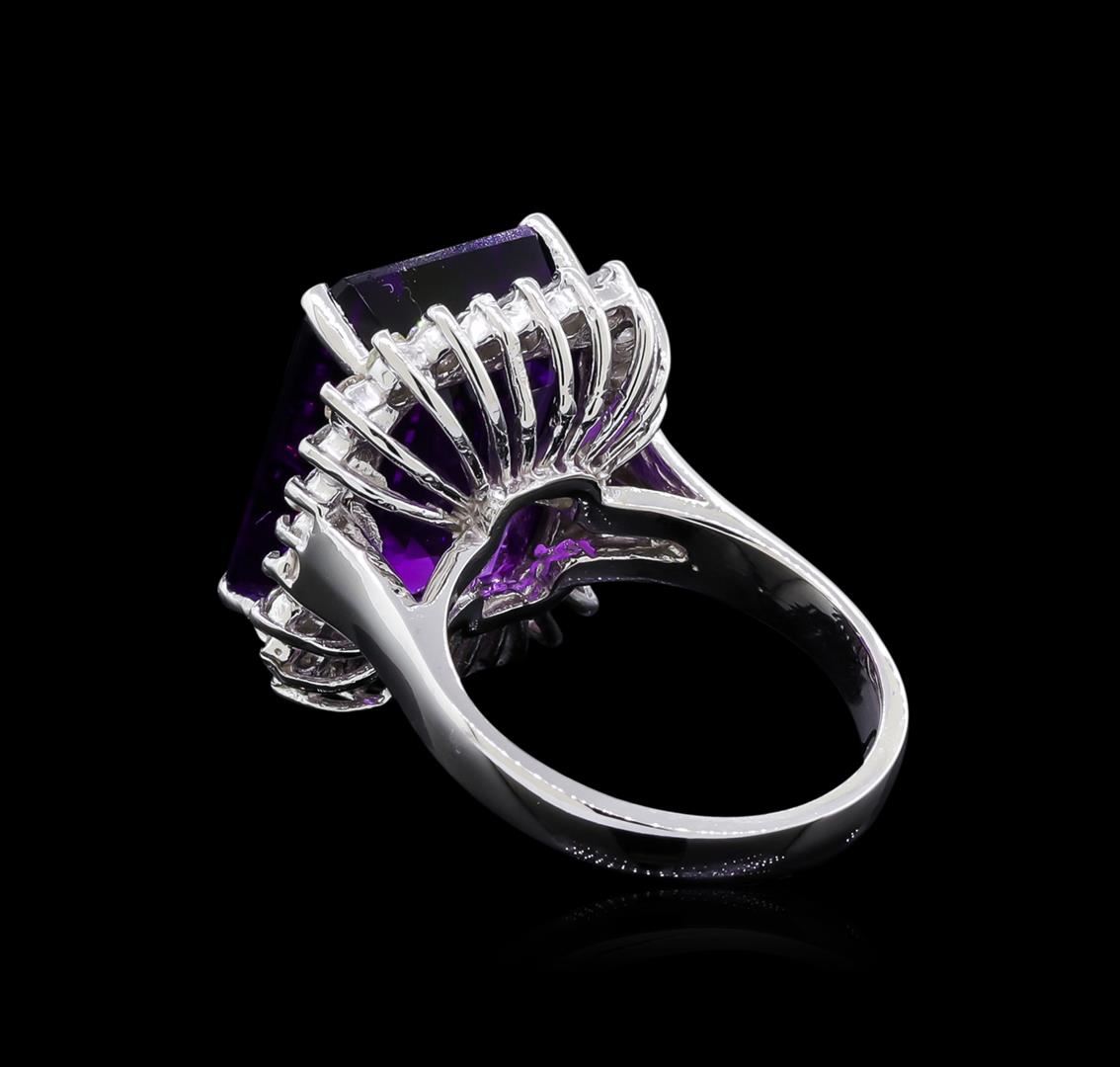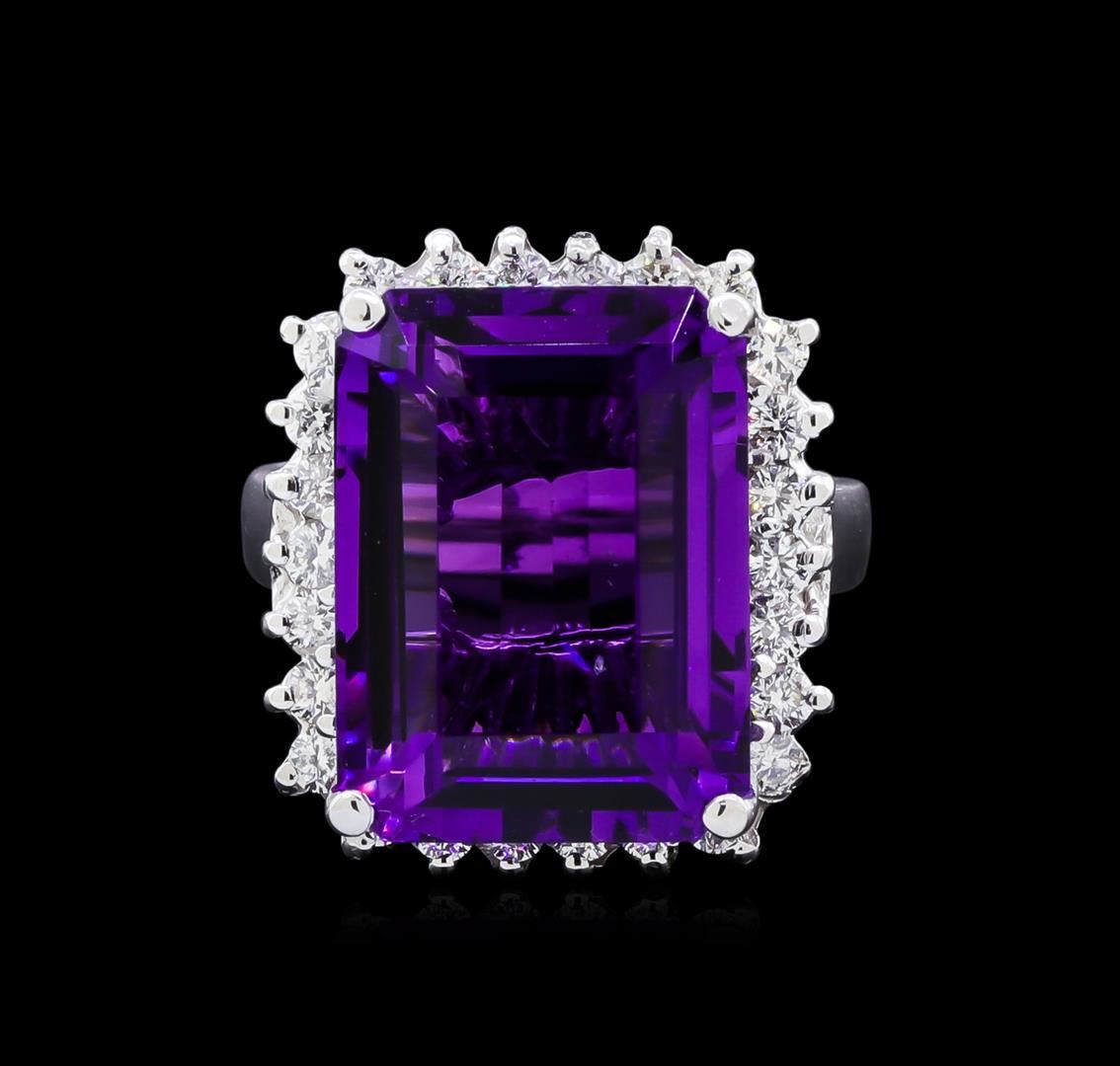 One ring featuring: 14KT white gold weighing 7.32 grams containing one amethyst with a total weight of 13.08ct and diamonds with a total weight of 0.72ct.