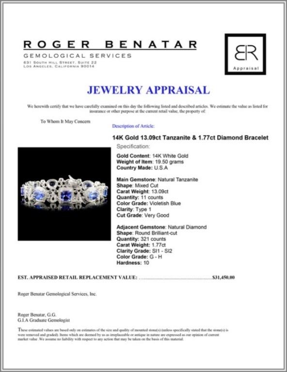 Regarding Appraised Jewelry and Loose Stones - Auctionfarm sends them out to a third party for Retail Replacement Value Appraisals, which are the most common. These types of evaluations are written for insurance needs. This would be the cost to replace the jewelry with an item of equal quality and kind, considered to be the current market price or the replacement value. This type of appraisal is done to protect you in the event of damage or loss of a valuable item. Our appraisals are conducted by independent 3rd Party appraisal firms that utilizes Certified GIA Gemologist. Appraisals should be used for verification of gemstone and/or metal weight, size, and grade only, not actual value. Appraisal value should be considered for insurance purposes only, not actual value, as price varies greatly from retail locations thru out the world. Items should not be purchased with the expectation to resell for appraisal price, or for profit.