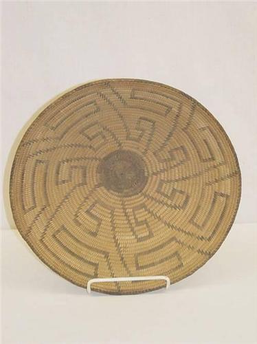 13 1/2" APACHE INDIAN COILED BASKET W/ GEOMETRIC DESIGN - OVERALL GOOD MINOR LOSSES;