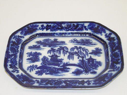13 1/2" MANILLA FLOW BLUE PLATTER-MANILLA PATTERN BY PODMORE WALKER & CO. - SURFACE WEAR & CRAZING