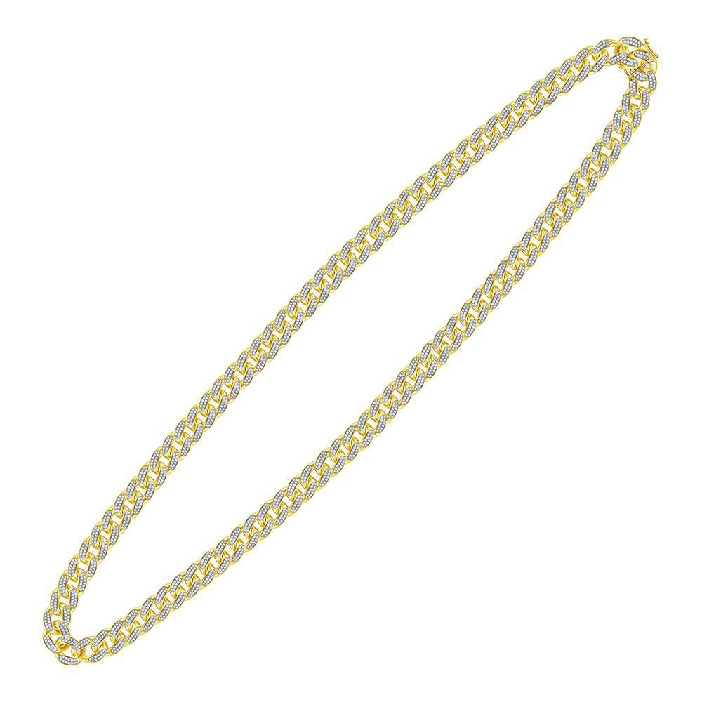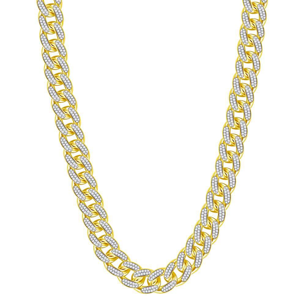 10kt Yellow Gold Mens Round Diamond Cuban Link Chain Necklace 13-1/5 Cttw