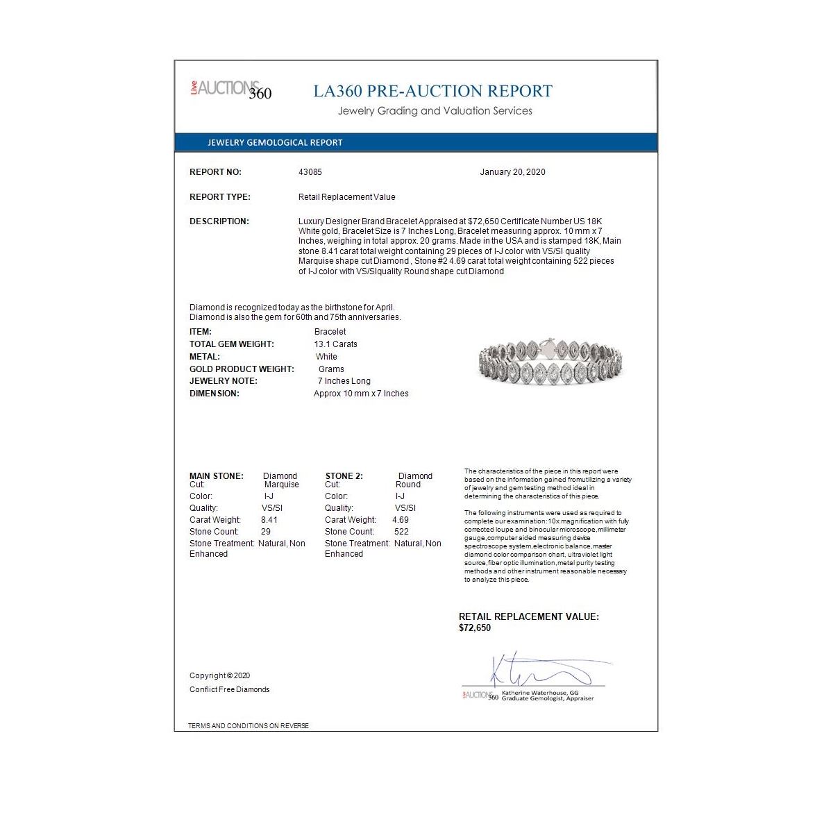 REF-1100K6Y - SKU: 43085 ---- 13.1 ctw Marquise Cut Diamond Micro Pave Bracelet 18K White Gold