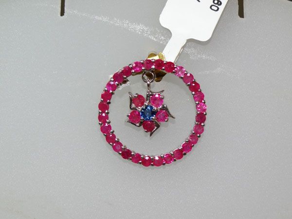 13.10 CTW RUBY AND SAPPHIRE PENDANT .925 STERLING SILVE **|**|** 13.10 CTW RUBY AND SAPPHIRE PENDANT .925 STERLING SILVER; RUBY 2.56 CTW ; MSRP: $400