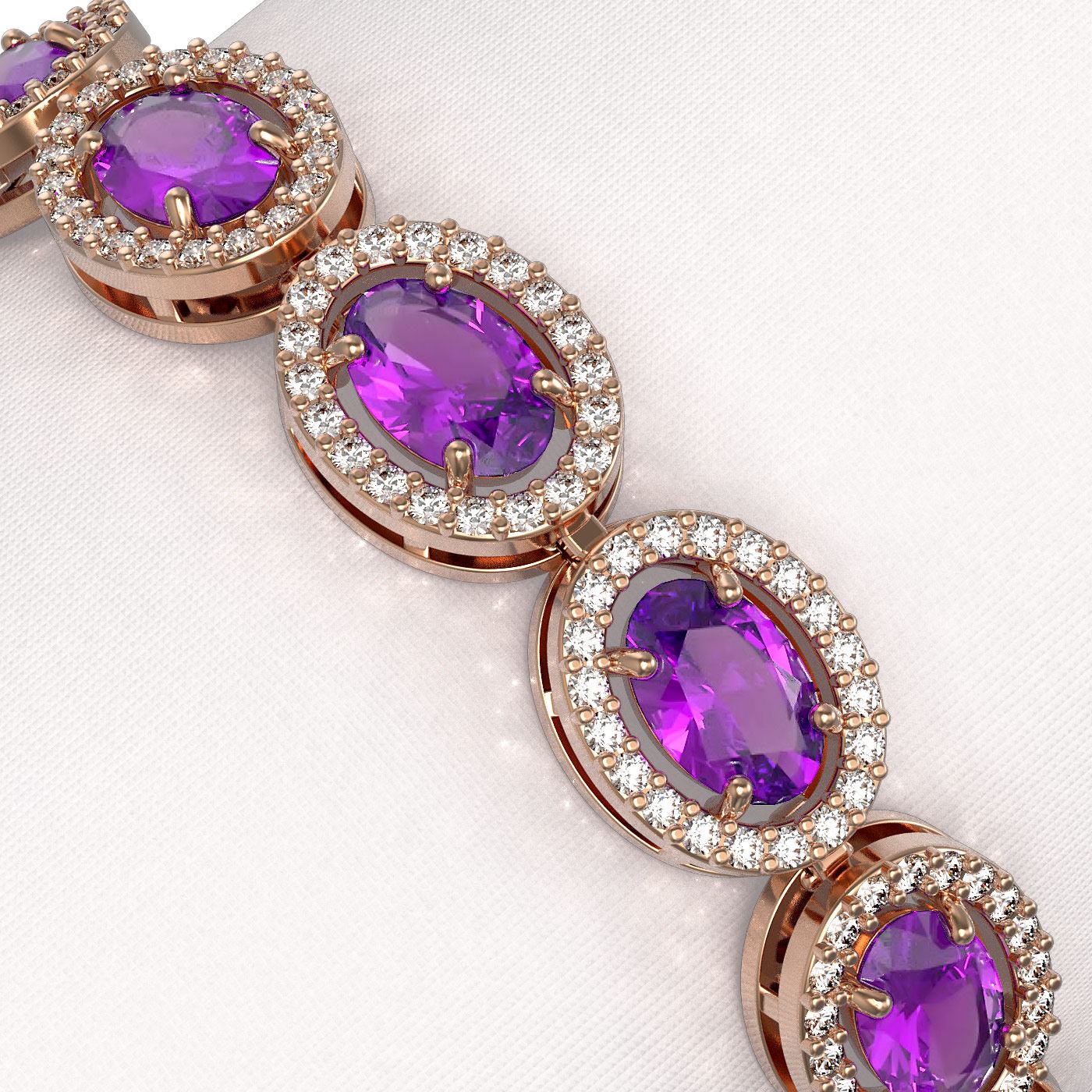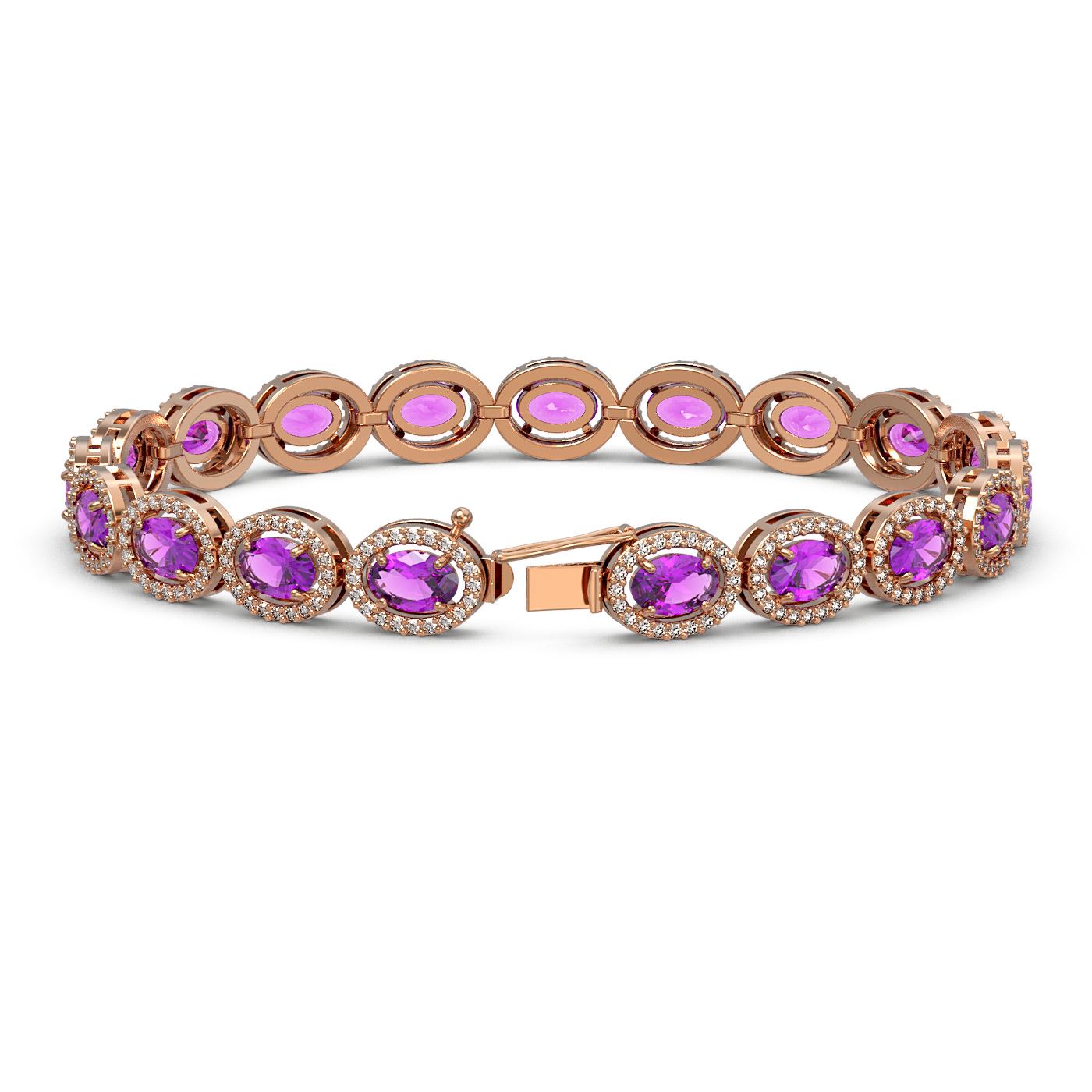 SKU: 40491 ---- 13.11 ctw Amethyst & Diamond Micro Pave Halo Bracelet 10k Rose Gold
