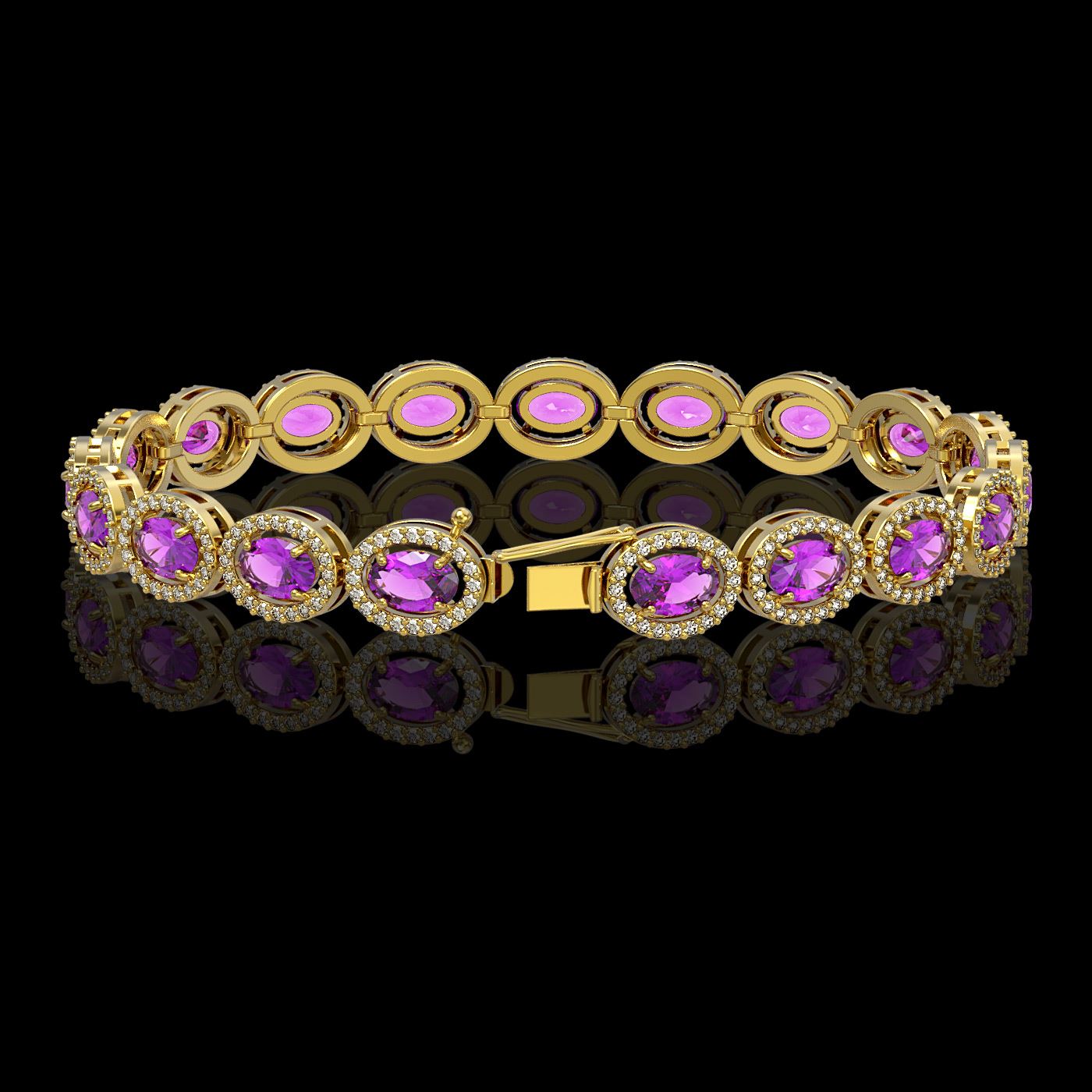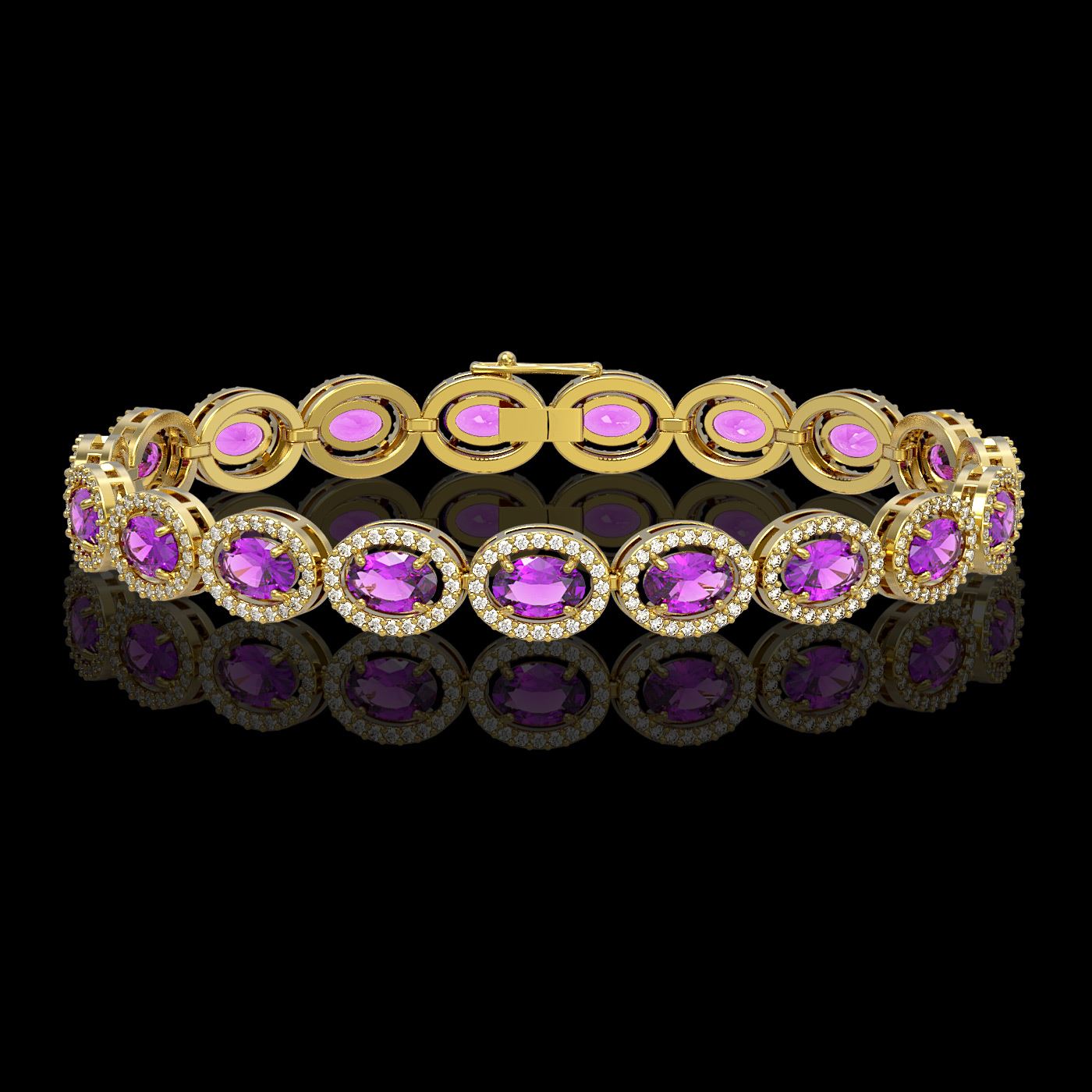 REF-263W6H - SKU: 40492 ---- 13.11 ctw Amethyst & Diamond Micro Pave Halo Bracelet 10k Yellow Gold
