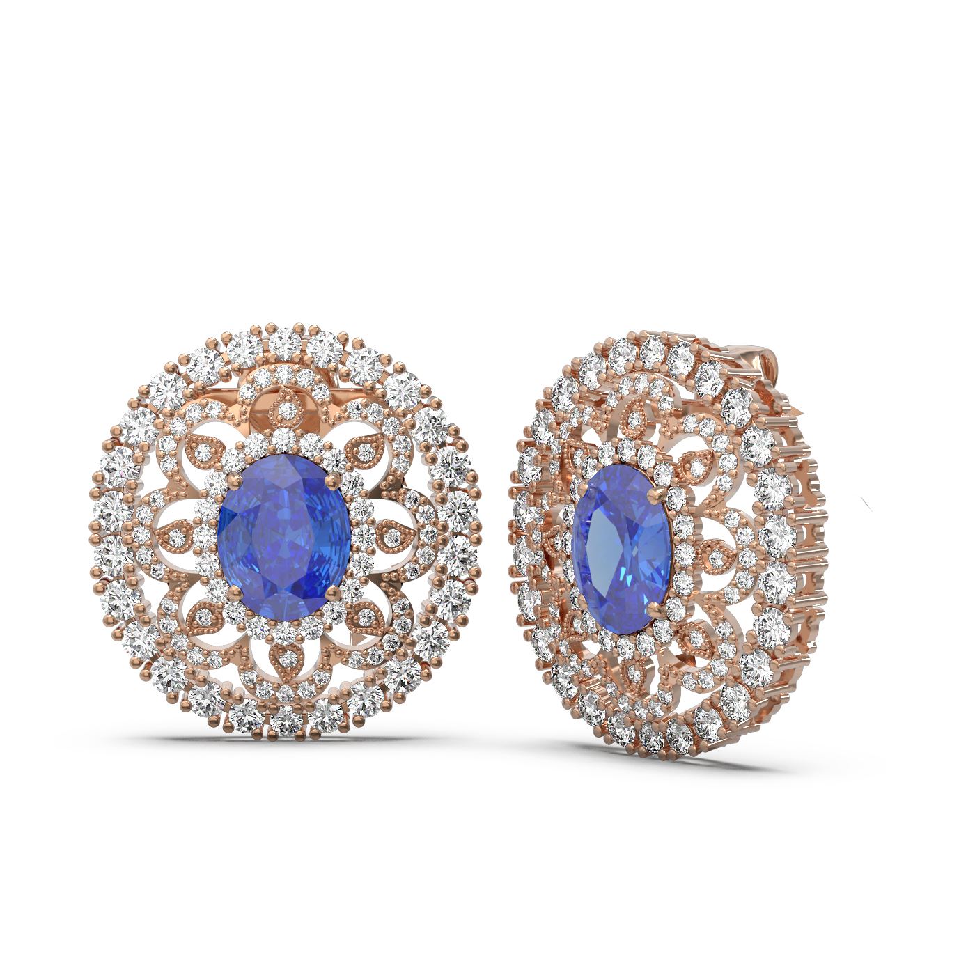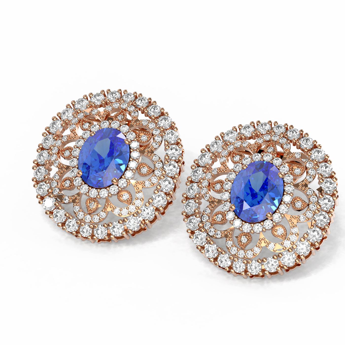 REF-618A2N - SKU: 53658 ---- 13.11 ctw Tanzanite & Diamond Earrings 18K Rose Gold