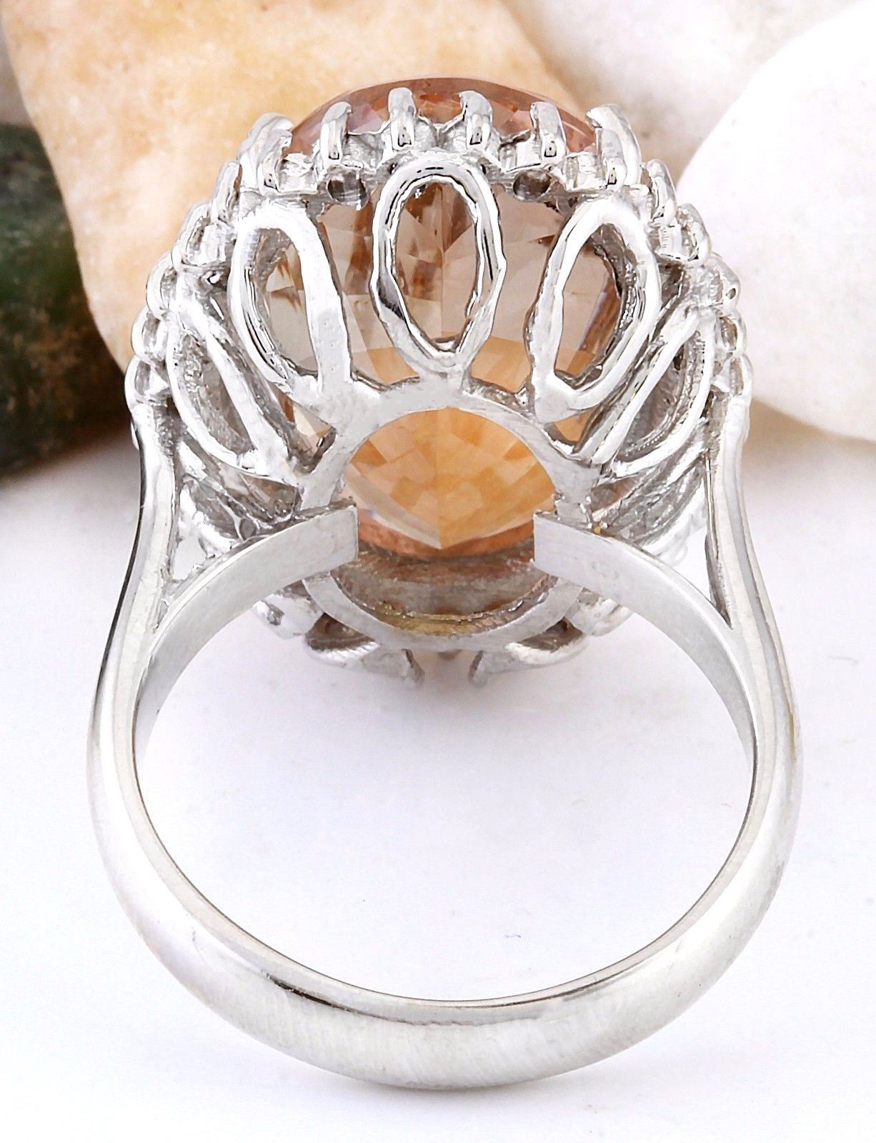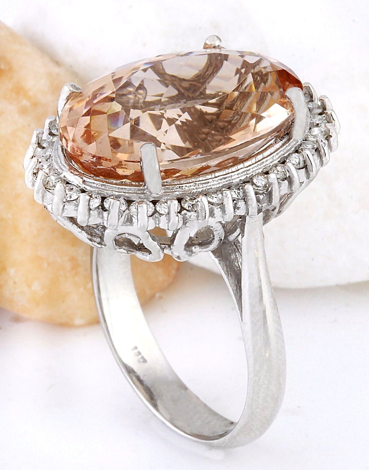 13.12 Carat Natural Morganite 14K Solid White Gold Diamond Ring