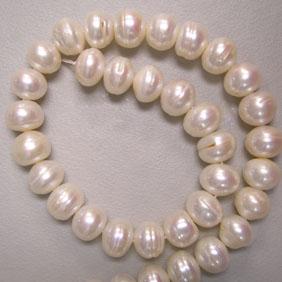 WHITE FRESH WATER PEARL STRING. EACH PEARL MEASURES 13-12 MM APPROX. LENGTH: 16 INCHES