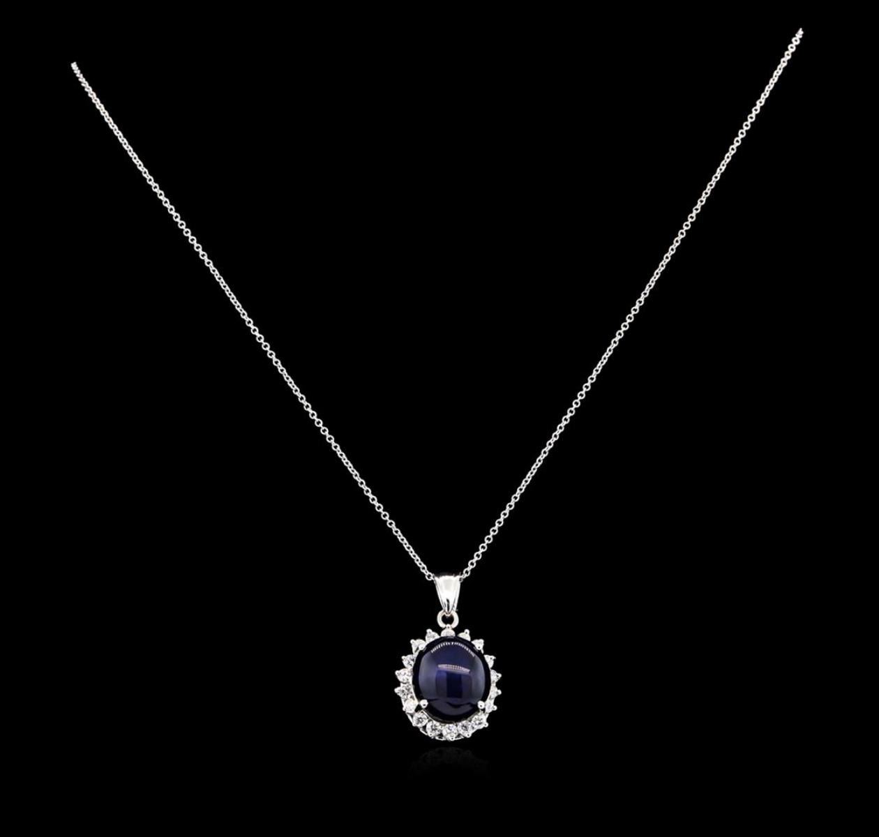 One pendant featuring: 14KT white gold weighing 3.95 grams containing one blue sapphire with a total weight of 13.12ct and diamonds with a total weight of 0.75ct.