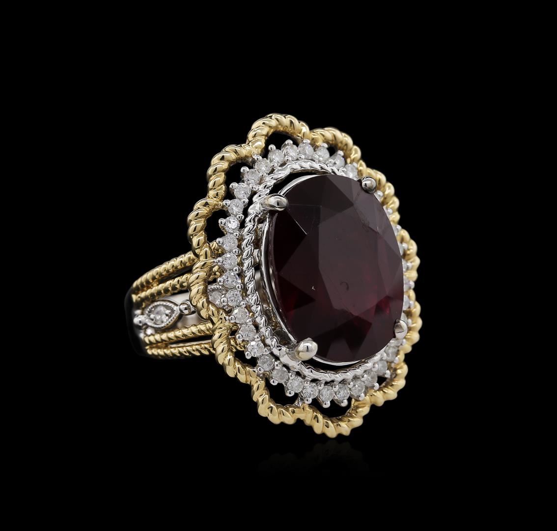 One ring featuring: 14KT white and yellow gold weighing 9.10 grams containing one ruby with a total weight of 13.13ct and diamonds with a total weight of 0.50ct.