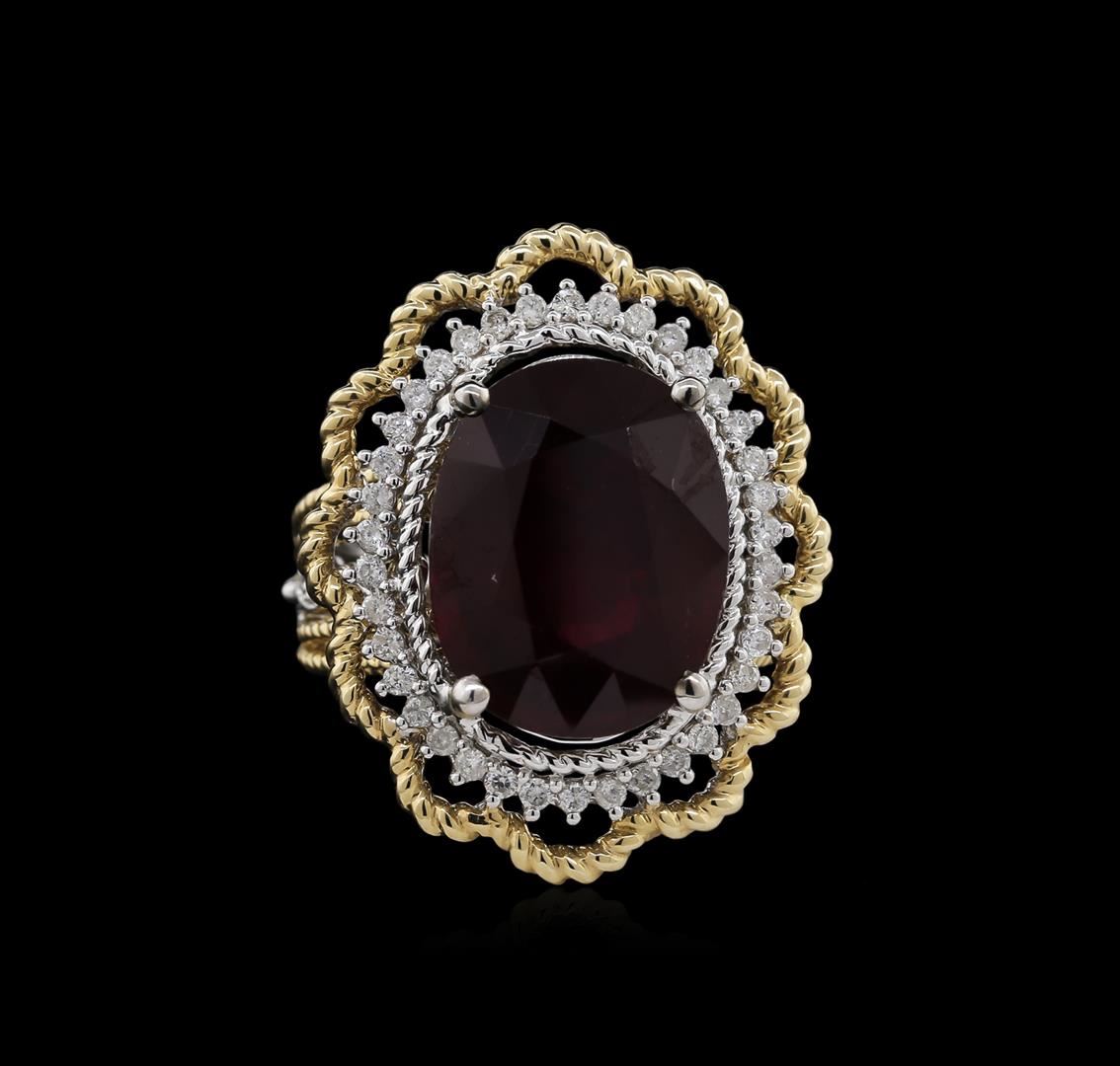 One ring featuring: 14KT white and yellow gold weighing 9.10 grams containing one ruby with a total weight of 13.13ct and diamonds with a total weight of 0.50ct.