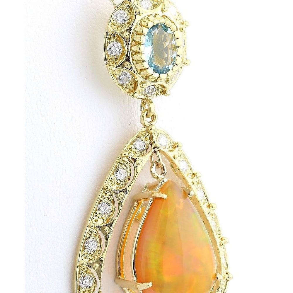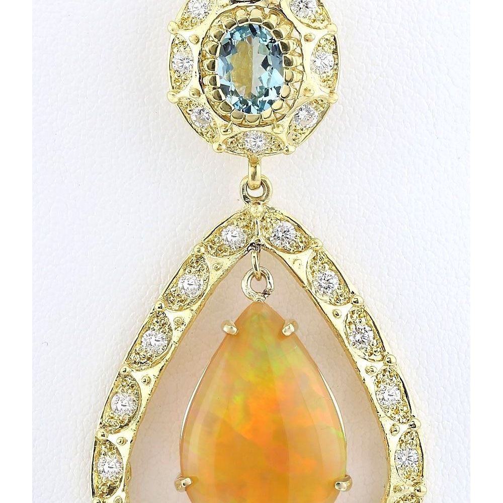13.14 CTW Natural Opal, Aquamarine Diamond Pendant 14k Solid Yellow Gold