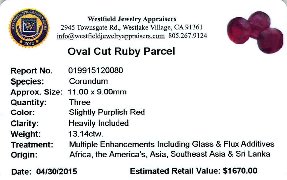 One 13.14 ctw Oval Mixed Ruby Parcel.