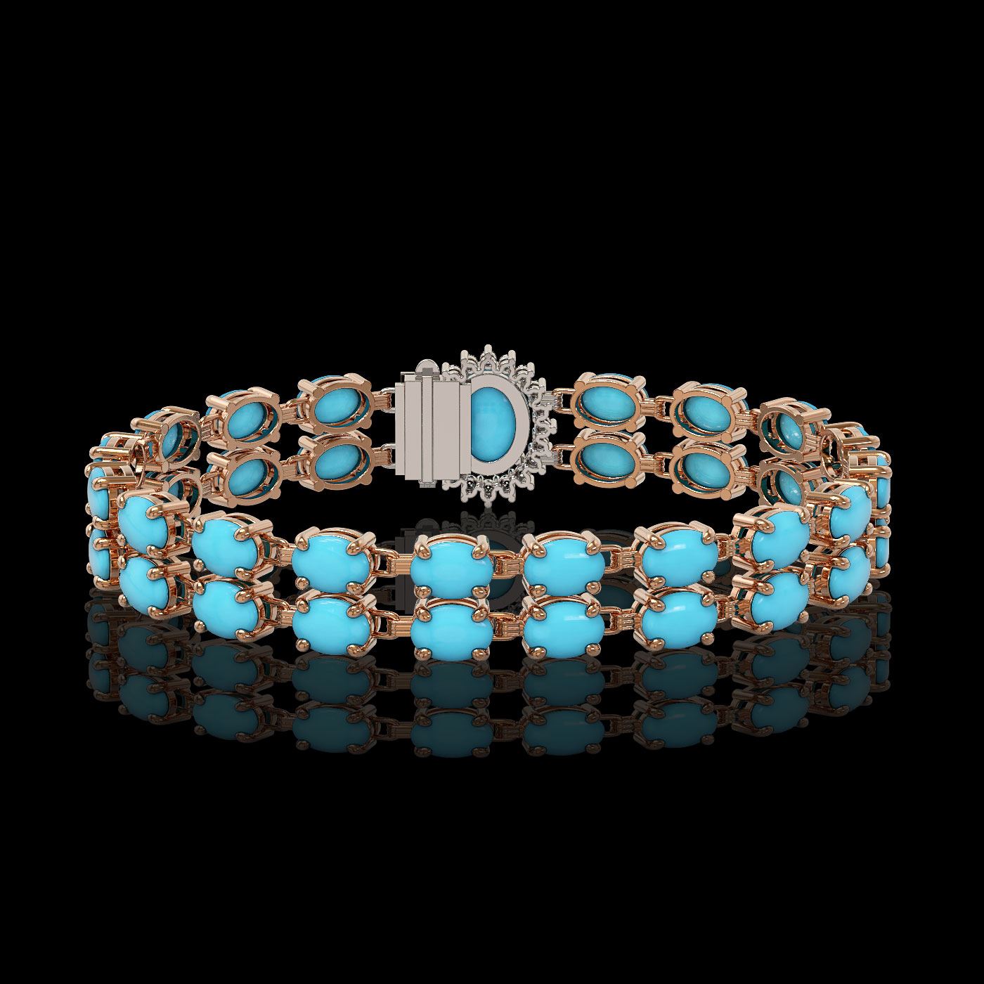 REF-209H3R - SKU: 45474 ---- 13.14 ctw Turquoise & Diamond Bracelet 14K Rose Gold
