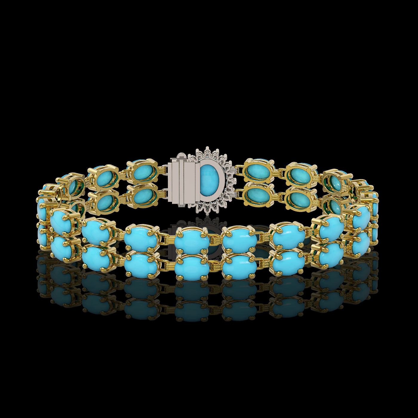 REF-209K3Y - SKU: 45475 ---- 13.14 ctw Turquoise & Diamond Bracelet 14K Yellow Gold
