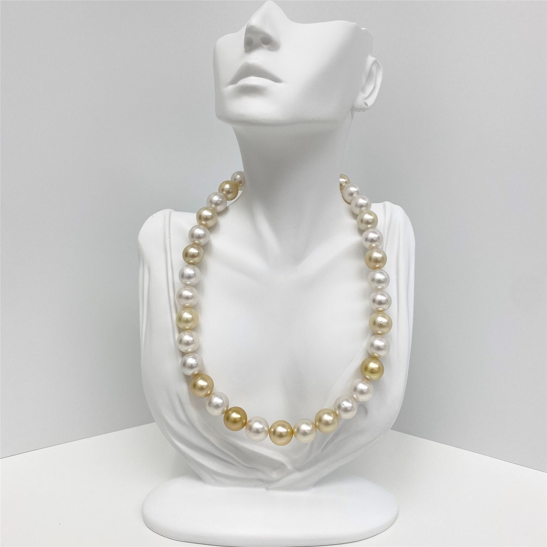 AAA Quality, White and Golden South Sea Near-Round Pearl Necklace, 18 inches hand-knotted with gold fish-hook clasp #CP67