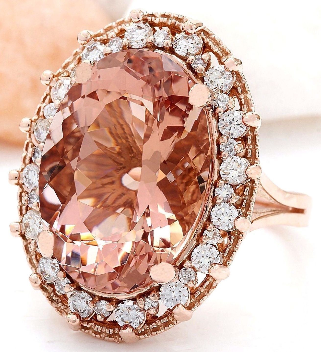 13.15 Carat Natural Morganite 18K Solid Rose Gold Diamond Ring