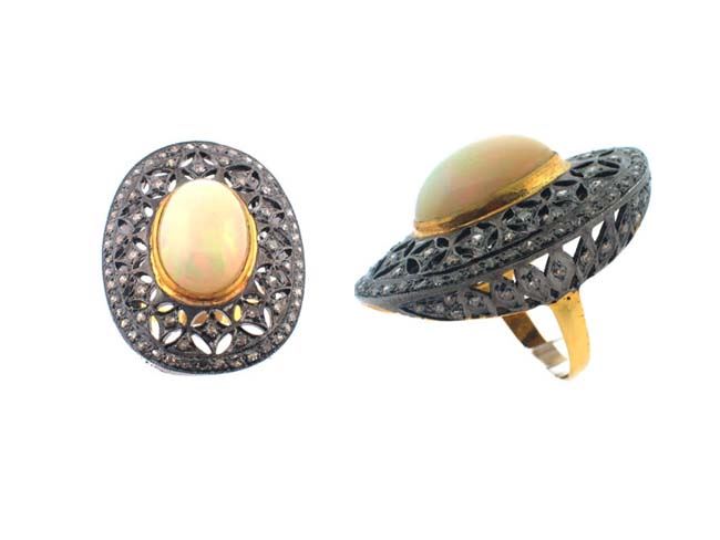 OPAL & DIAMOND RING/Diamond Count 1:/Diamond Total Carat :1.9/Diamond Color & Clarity:J-L/I1-I2 Single Cut /Diamond Count 2:/Diamond 2 CTW:/Diamond Count 3:/Gemstone Count 1:1/Gemstone CTW:11.25/Gemstone Dimension:/Gemstone Shape:Oval /Gemstone Count 2:/Gemstone Shape:/Ring Dimension:/Metal Type 1:14KYellow Gold :Gram Weight:3.5/Metal Type 2:over0.925Sterling Silver / Weight Gram:5.48/Gross Weight :11.61/Ring Size:7