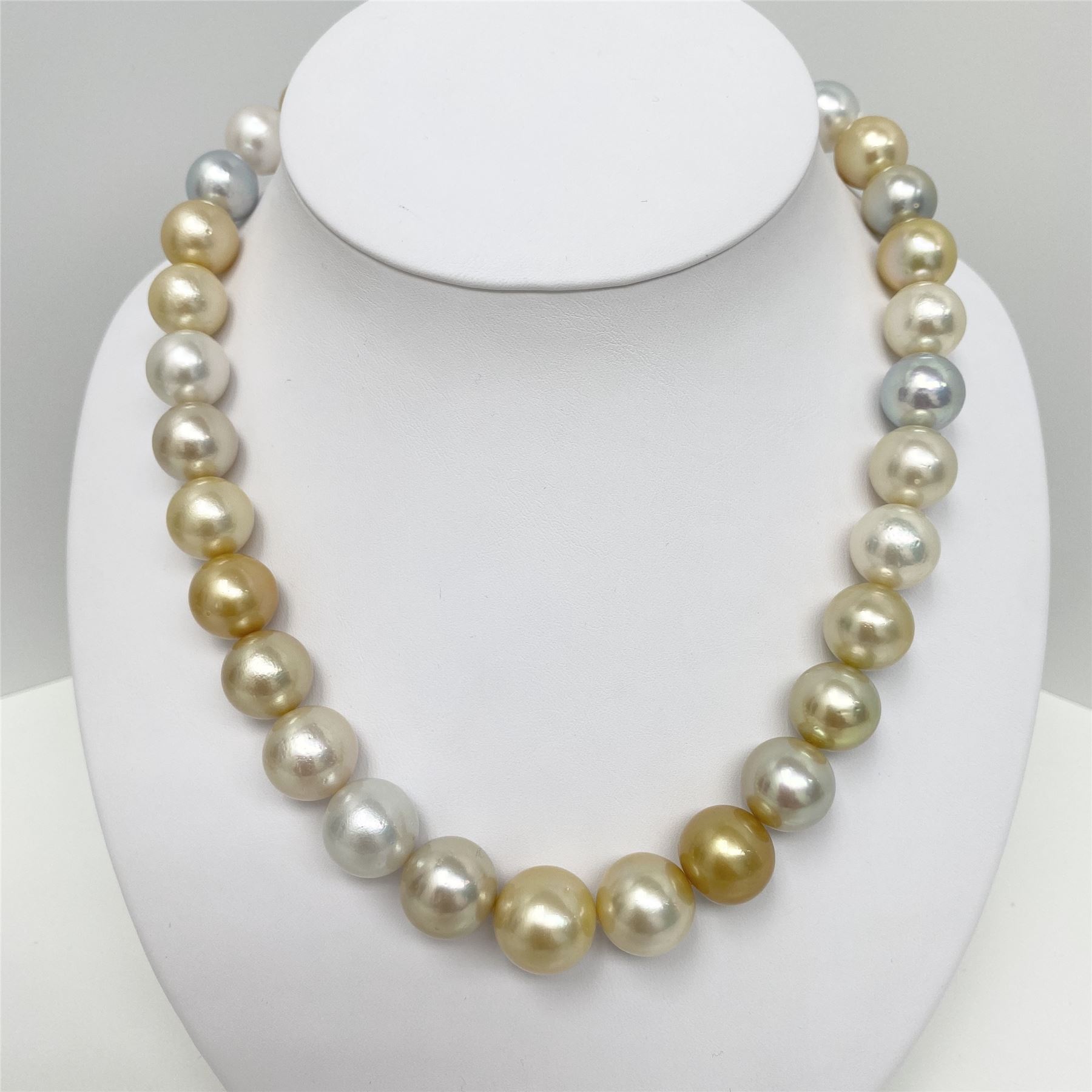 13-15mm South Sea White and Golden Near-Round Necklace with Gold Clasp