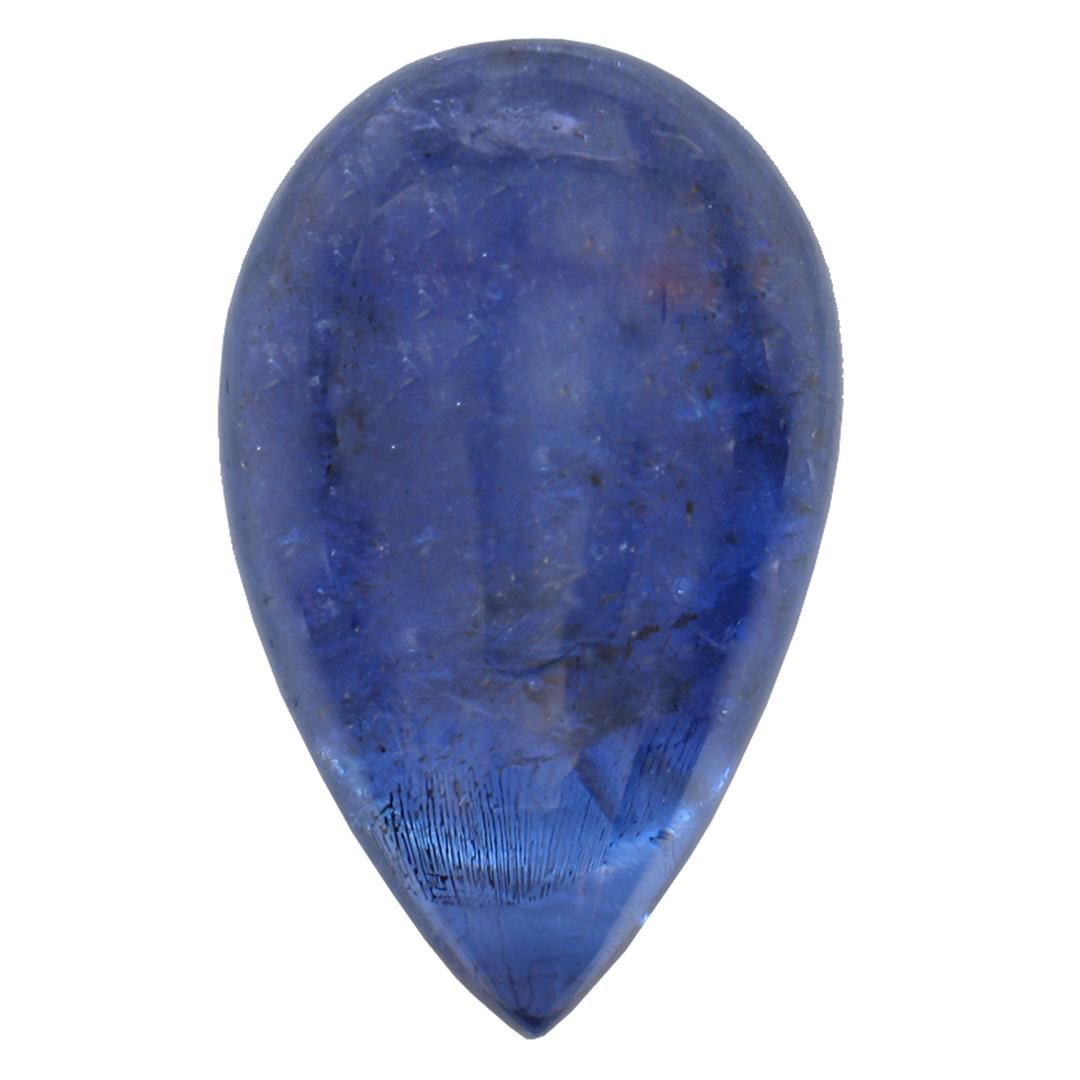 One pear cabochon cut natural tanzanite, measuring 18.00 x 12.00 x 7.00mm, exact total weight 13.16ct., clarity is heavily included, type I, dark, very slightly grayish, blue color, (GIA B 7/3), cut is good. Transmitting light somewhat diffusely, transparent to translucent. Naturally occurring internal & external characteristics are present. Indications of heat treatment. Westfield Appraised at $1,265.00.