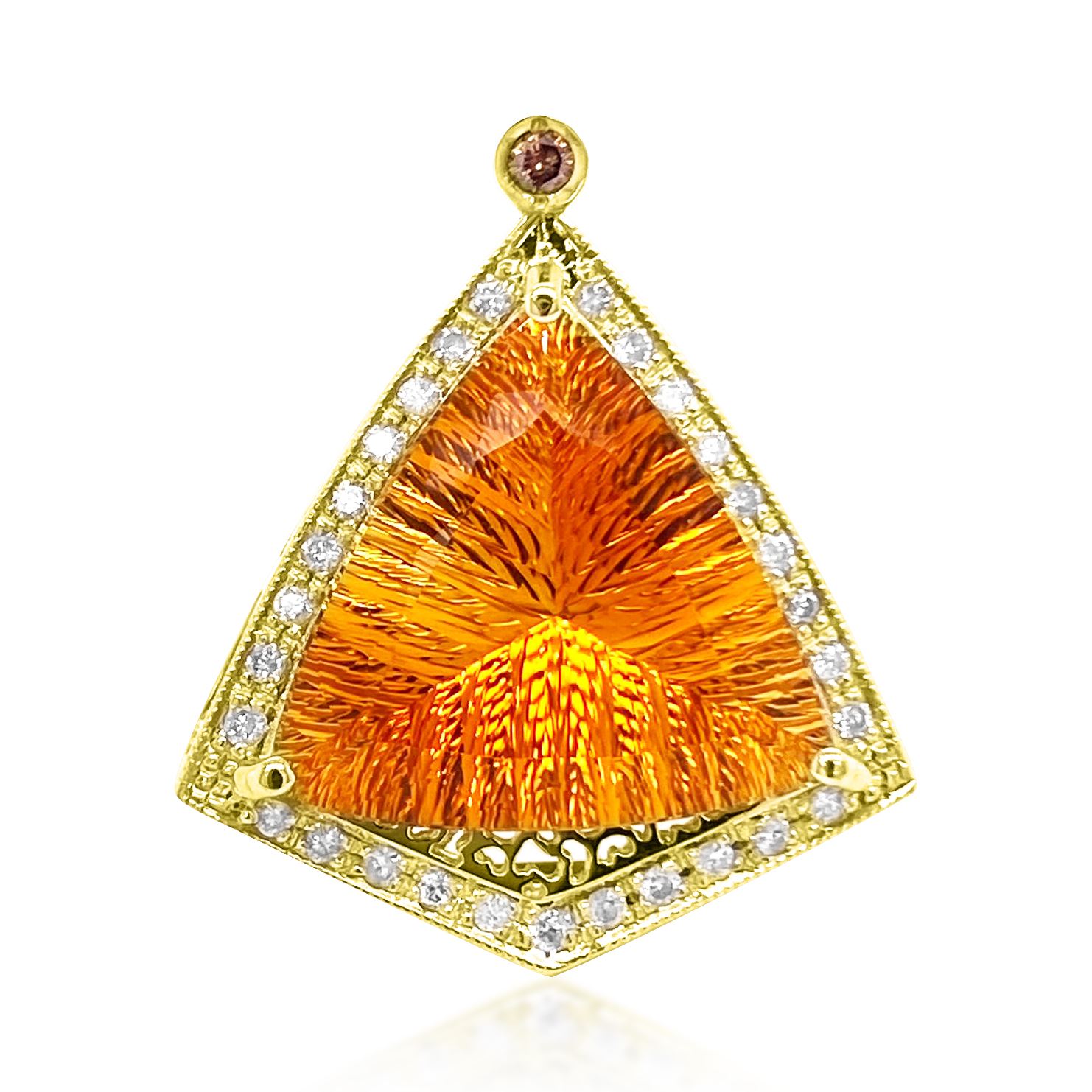 13.16ct CITRINE 14K Yellow Gold 8.3gm Diamond 0.48ct Pendant #CIT80