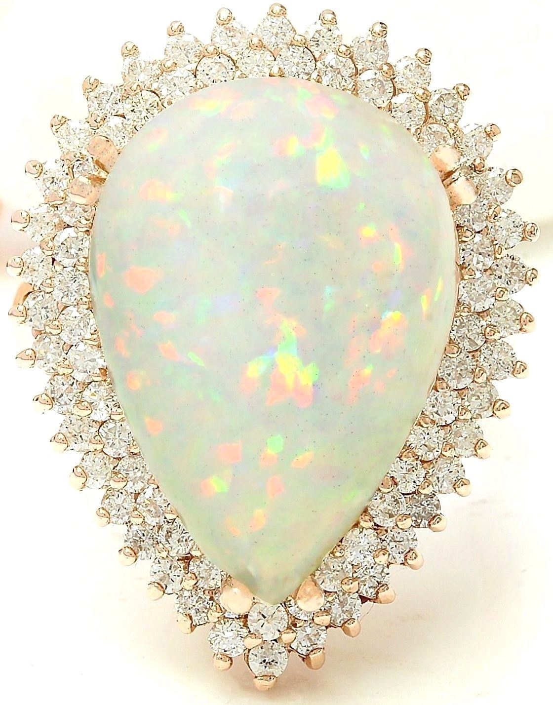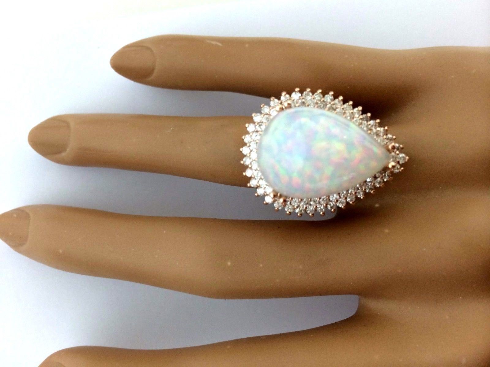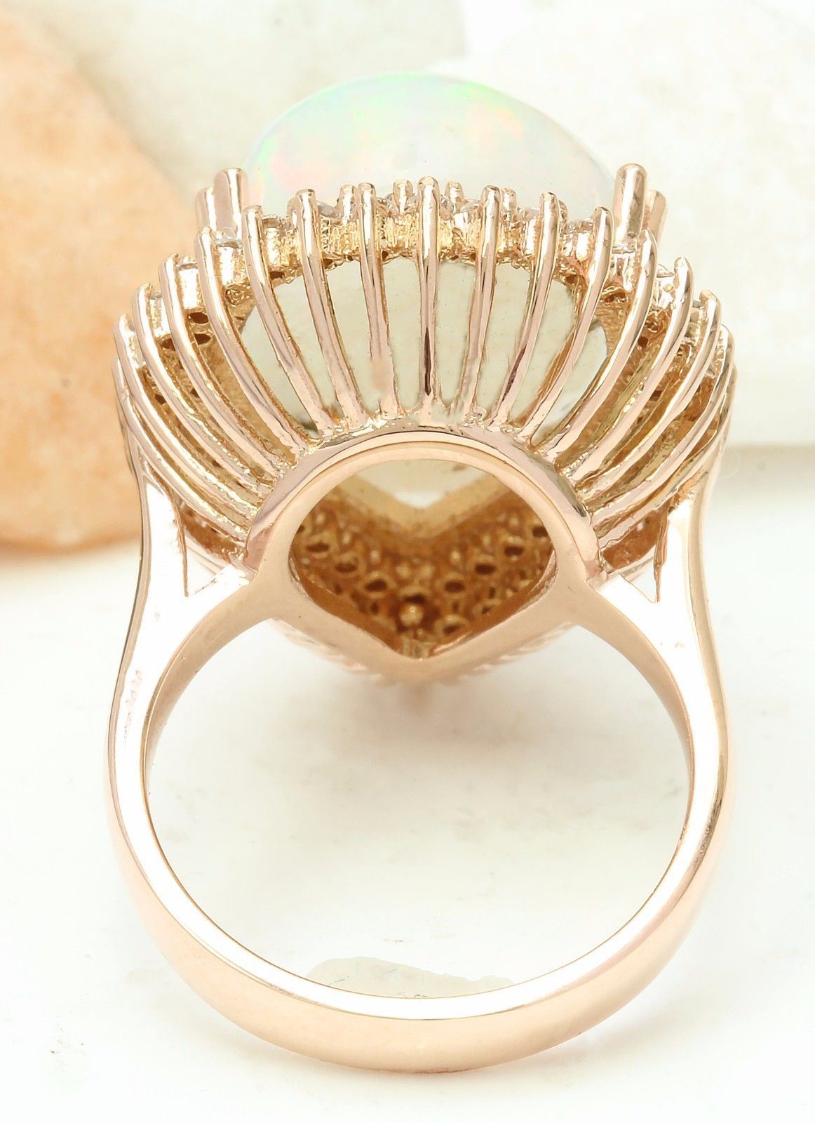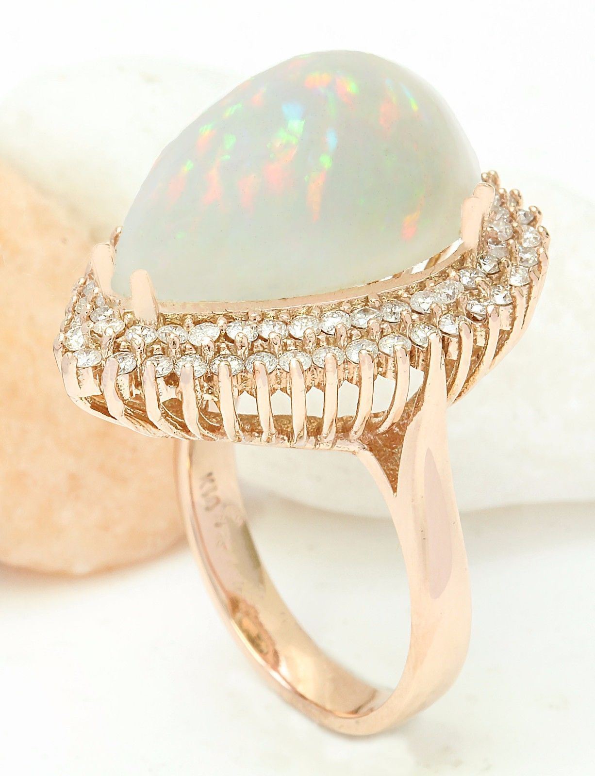 13.18 Carat Natural Opal 18K Solid Rose Gold Diamond Ring