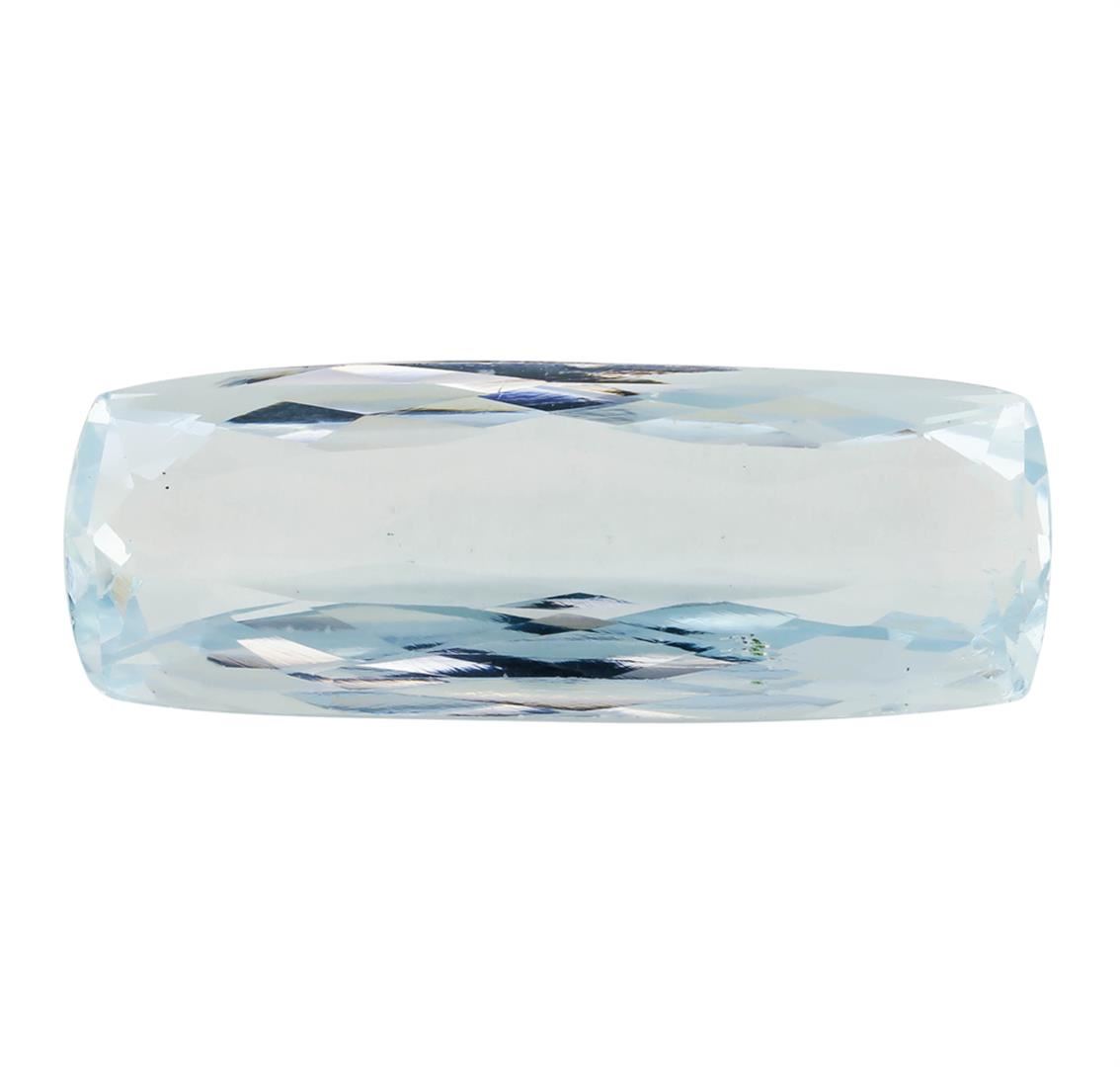 One natural rectangle cushion cut aquamarine with an exact weight of 13.18ct., clarity is eye clean, slightly grayish greenish blue. Gemological Appraisals Services estimates the retail value at $4613 GAS Appraised.
