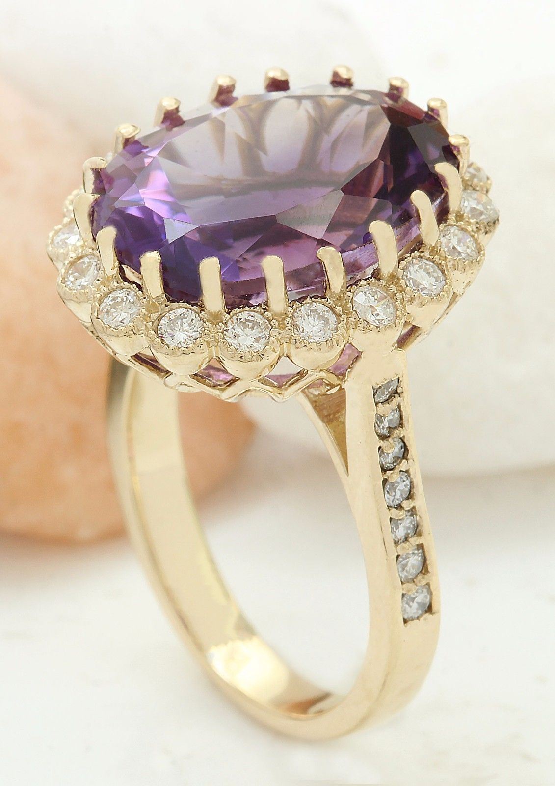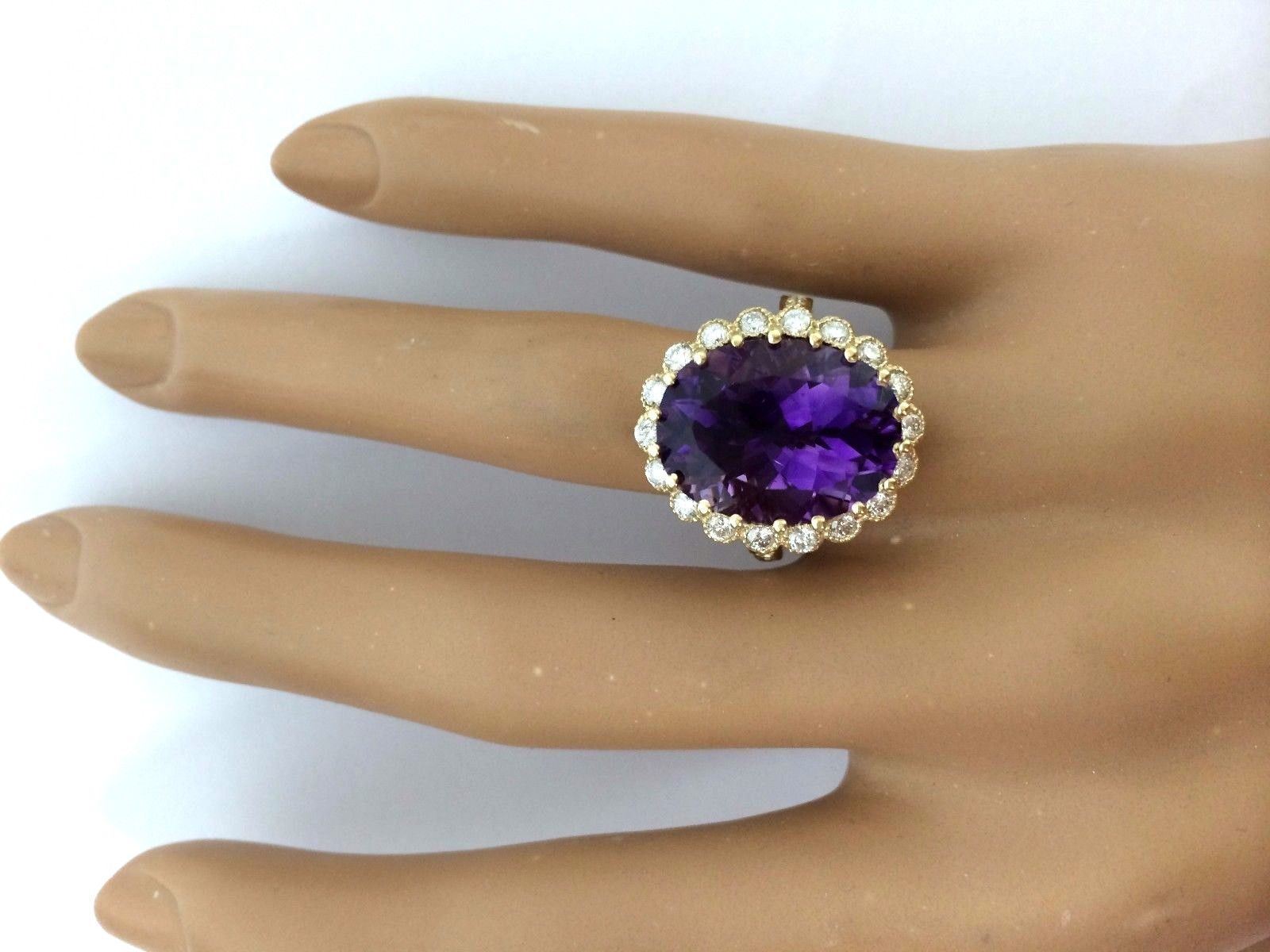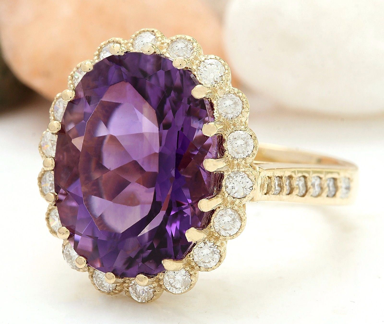 13.19 Carat Natural Amethyst 14K Solid Yellow Gold Diamond Ring