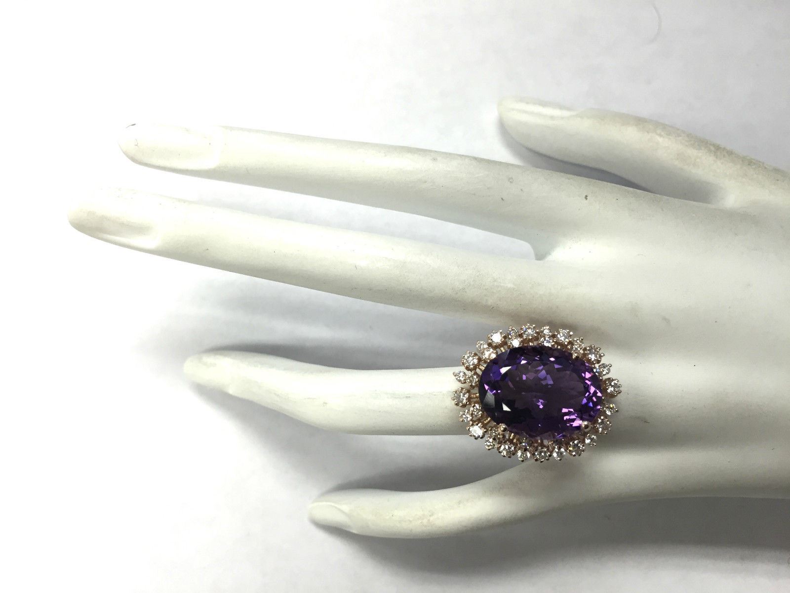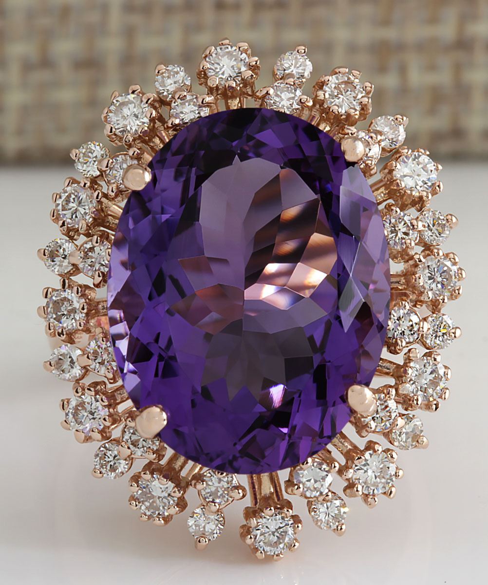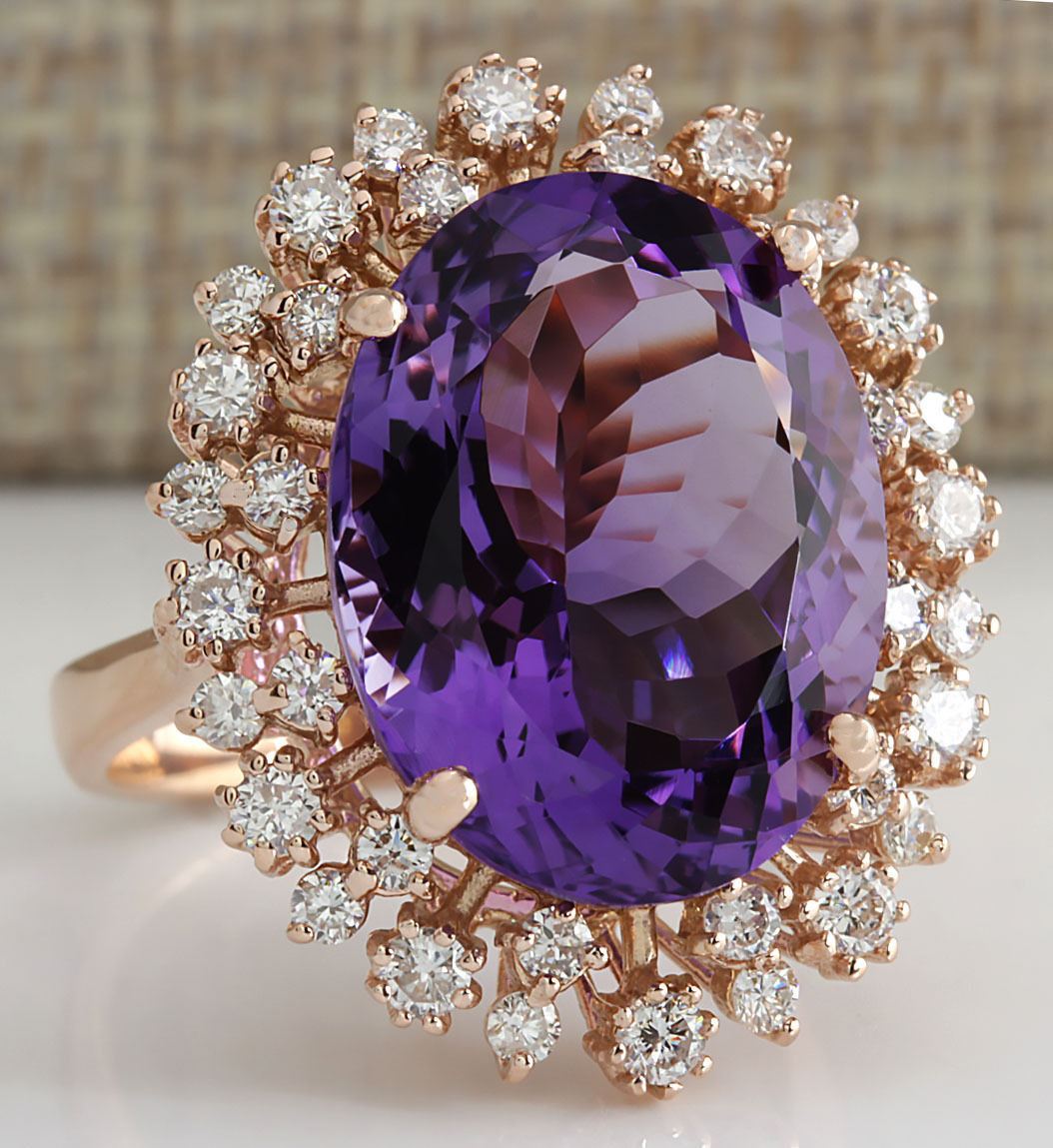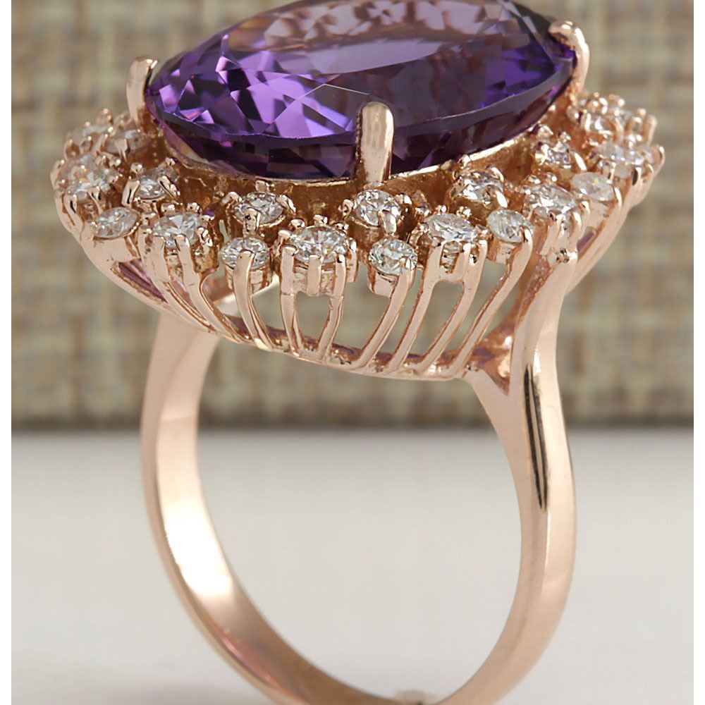 13.19 CTW Natural Amethyst And Diamond Ring In 18K Solid Rose Gold