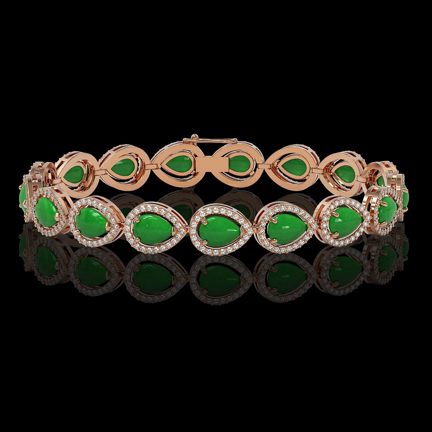 REF-305W8H - SKU: 46049 ---- 13.19 ctw Jade & Diamond Micro Pave Halo Bracelet 10k Rose Gold