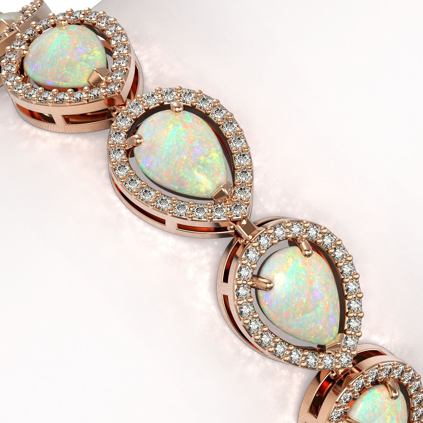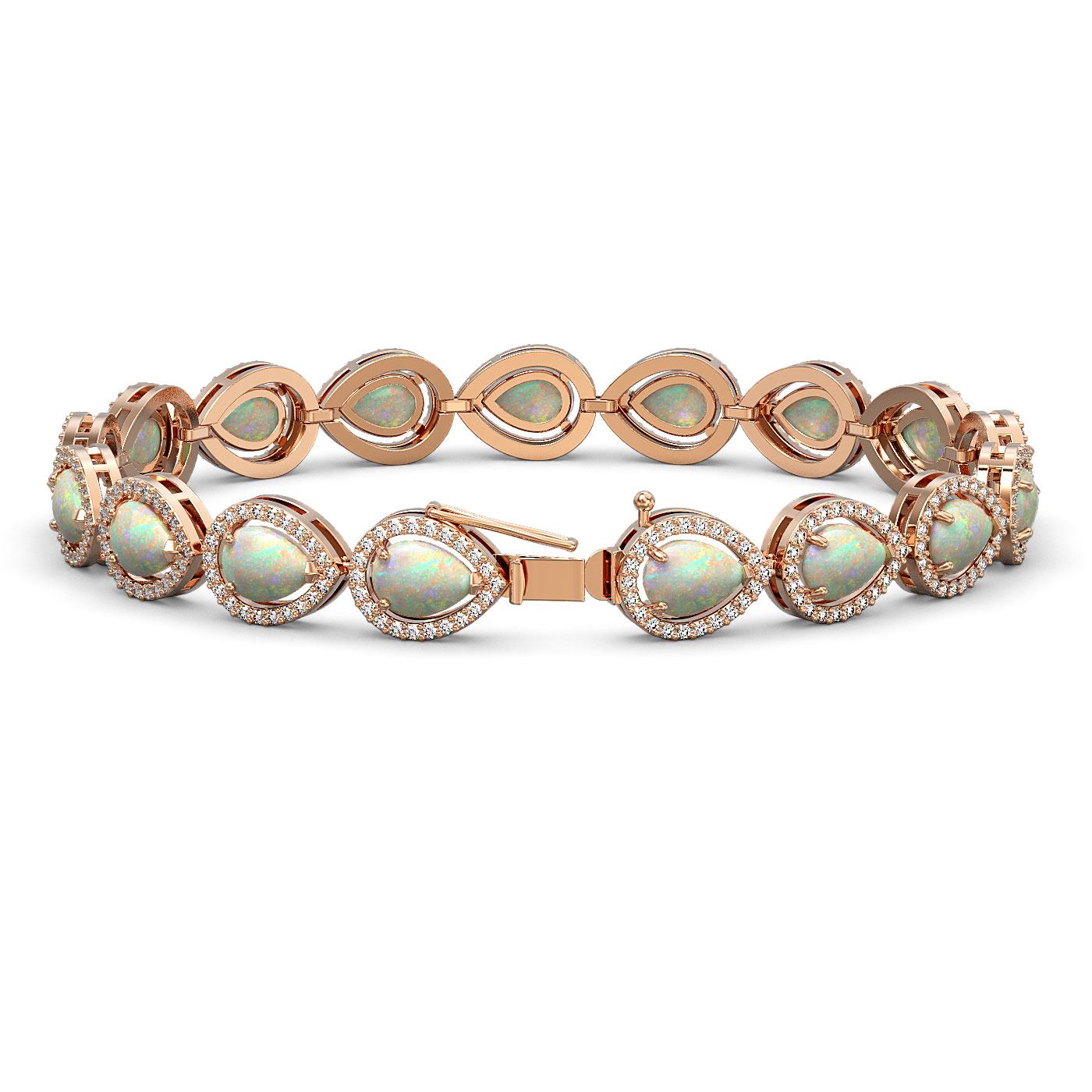 REF-301K5Y - SKU: 41106 ---- 13.19 ctw Opal & Diamond Micro Pave Halo Bracelet 10k Rose Gold